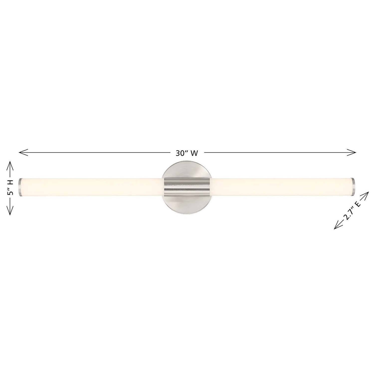 This Savoy House Connor LED bath vanity light brings strong, contemporary style and bright, functional illumination to the vanity. Its integrated LED delivers 2200 lumens at a 3000K color temperature and 90 CRI, bringing clear and flattering light for everyday routines. Finished in Satin Nickel, Connor measures 5" in height, 30" in width and extends 2.7" from the wall. It is damp area rated, fully dimmable, and can be mounted horizontally or vertically to suit your layout. Part of Lighting Assets, a collection of stylish and practical lighting solutions for every space.