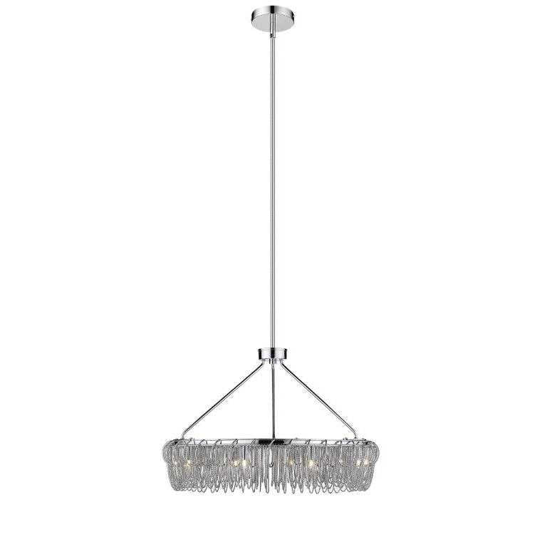 The Swirl 10-Light Round Chain Pendant blends sculptural movement with modern elegance, creating a striking centerpiece for dining rooms, foyers, and open-concept living spaces. Its circular frame and flowing chain suspension deliver visual balance and depth, while ten evenly spaced light sources provide bright, ambient illumination without overpowering the room.