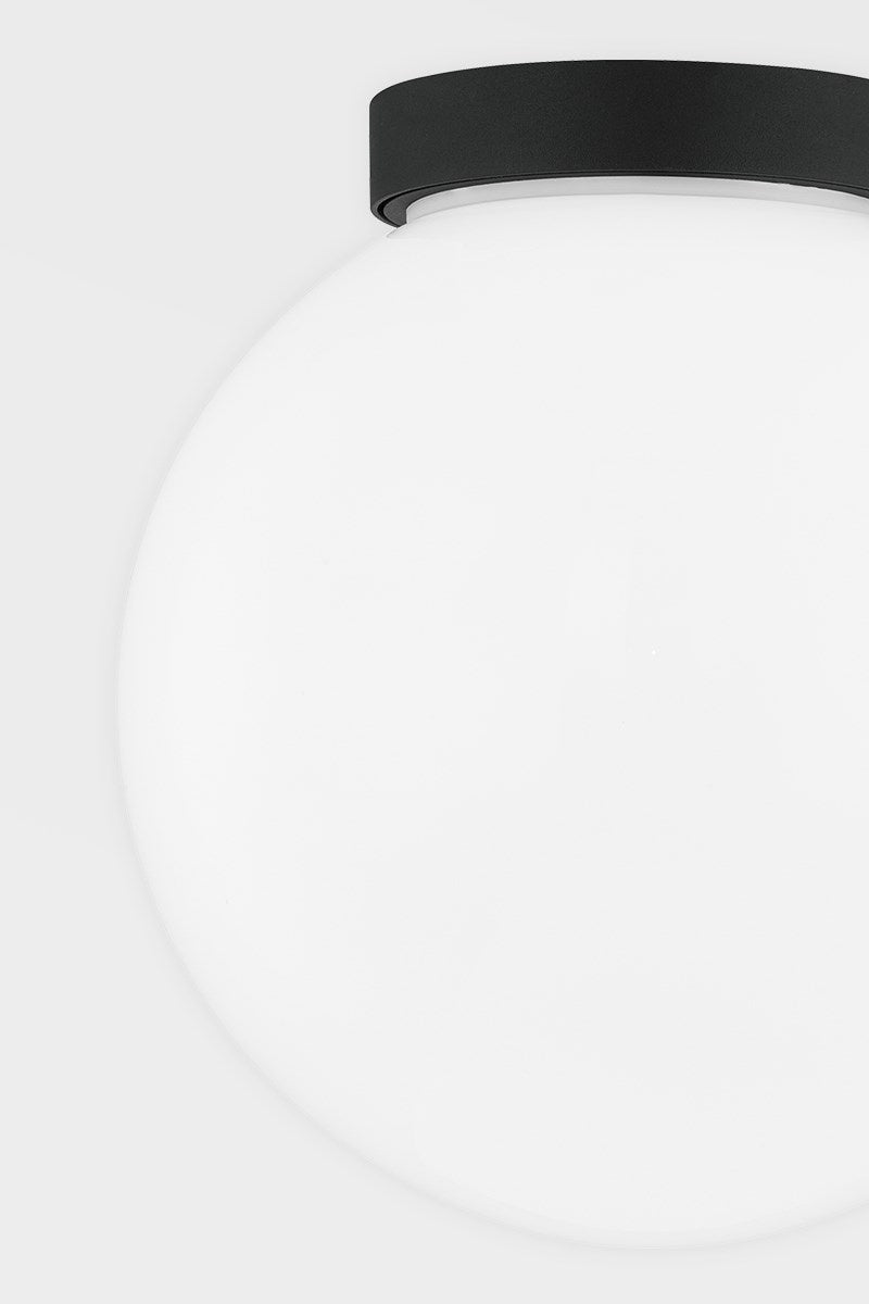 This highly usable fixture can be mounted on the wall or ceiling, indoors or out. With a backplate that nearly disappears from view when mounted, Ansel appears to float in midair. The textured black finish and opal shiny glass globe create a simple, elegant design that pairs with any style.
