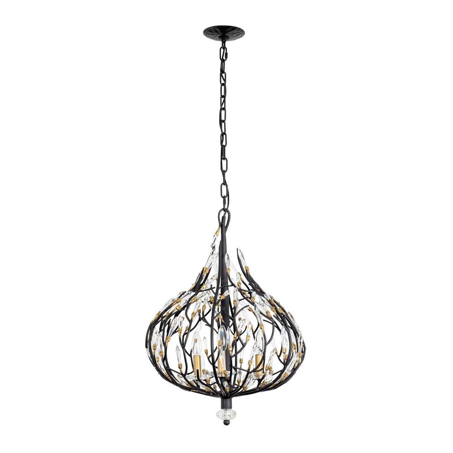 Bask is a unique crystal piece that melds together fashion influenced shapes and nature inspired details. Its pre-installed premium crystals and black with gold accents or gold dust finishes give duality with silvery sparkles and glimmering gold. This glamorous and whimsical collection is handmade using recycled steel and features unique elements, starting at the hand-hammered canopy. With stylishly sustainable choices like Bask, it's easy to see why Varaluz was the 2018 ARTS Awards Green Award Winner.