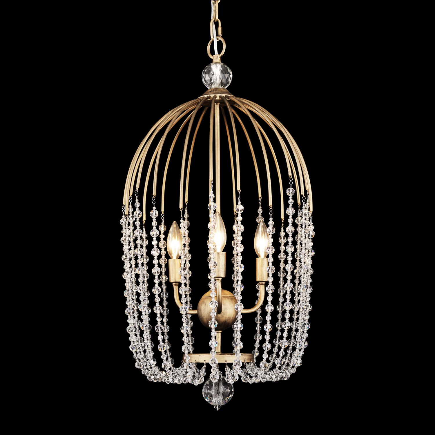 Parasol frames meet their crystal crush in this new pendant collection. Umbrella frames, carnival rides and birdcages clearly present in the design. But Continuing the frame lines with crystal is an unusal twist. Glam, coastal and cottage all coalesce together into one pretty, shimmery and airy pendant.