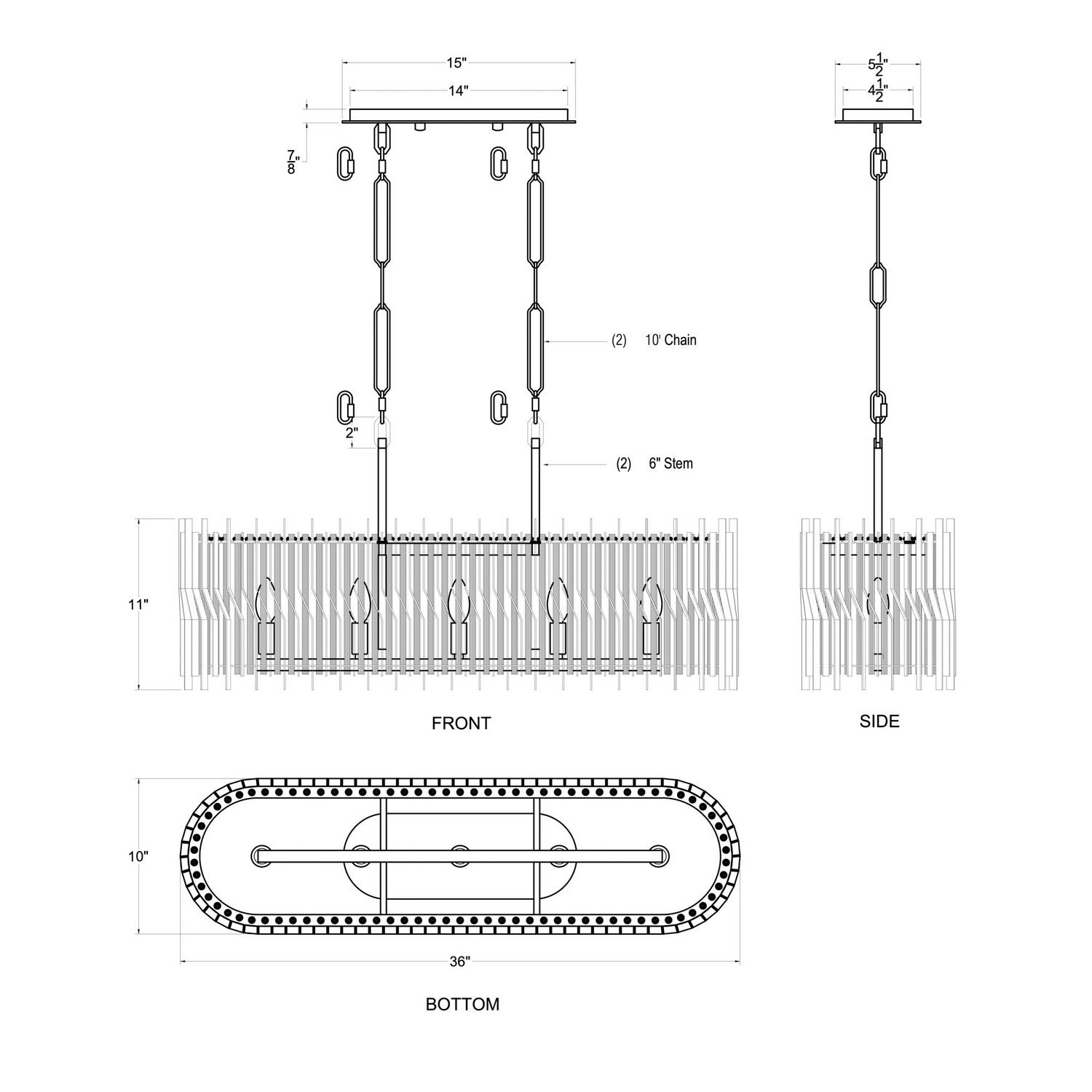 Park Row Five Light Linear Pendant in Matte Black/French Gold