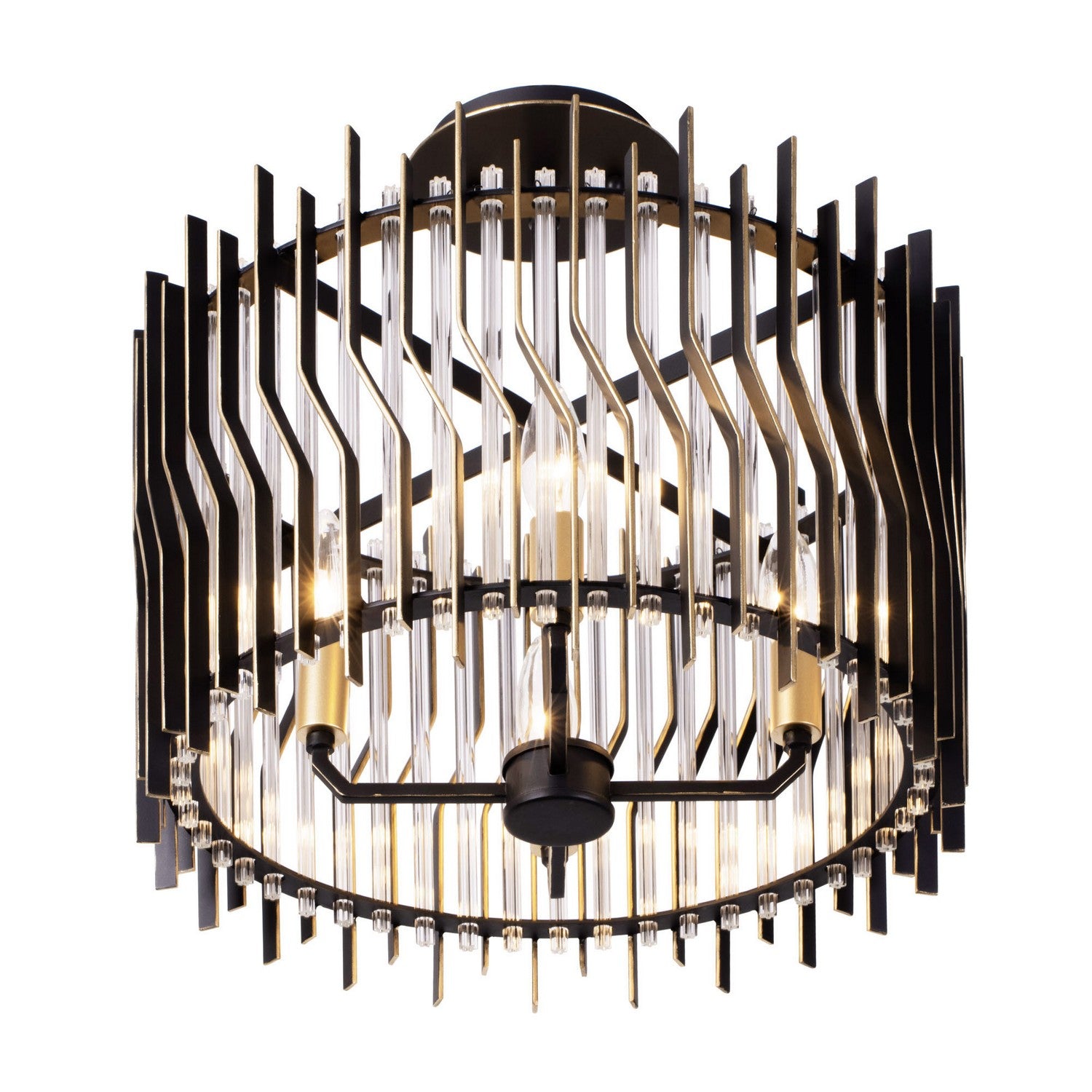 Park Row Four Light Semi-Flush Mount in Matte Black/French Gold - available from The Lighting Shoppe, trusted by Canadian homeowners