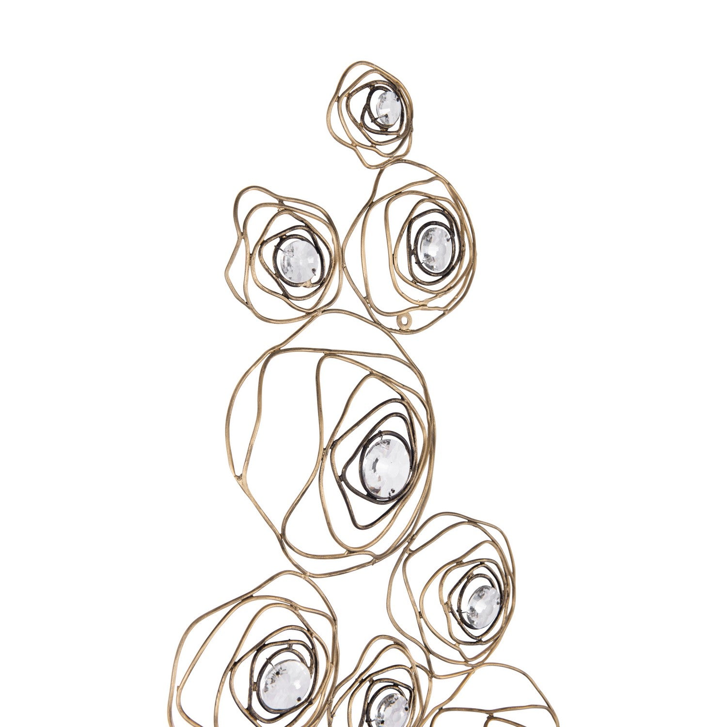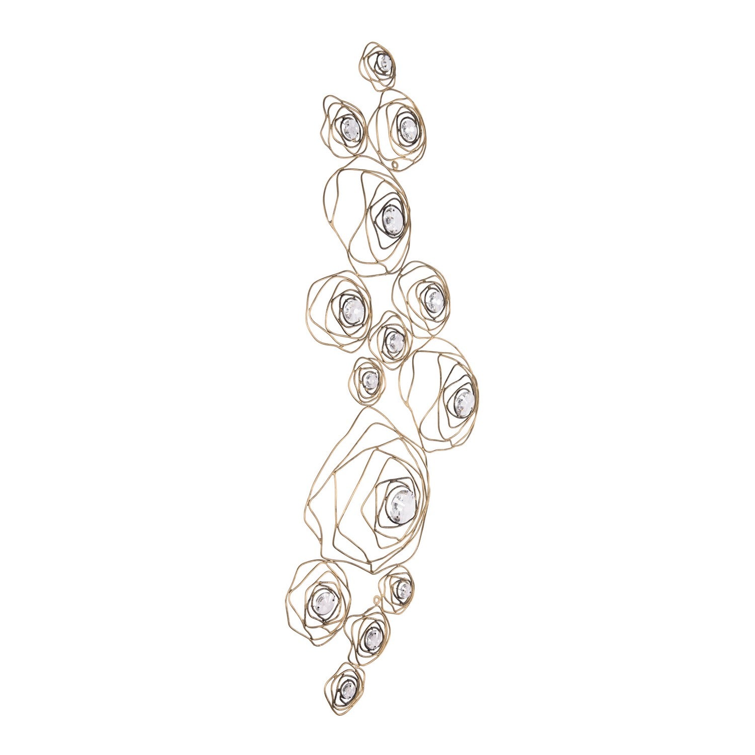 A rose is a rose is a rose, until of course, it is reimagined by Varaluz. Inspired by a drawing that appeared in the Japanese design magazine, Shin-Bijutsukai (New Oceans of Art), Ethereal Rose marries swirling lines of varying thicknesses and irregular curves with a mid-century metal work technique. At the center of each rose is a multi-faceted round optic quality crystal element. The hanging stems and secondary canopy complete the wispy design motif. A Havana Gold hand-painted multi-layered finish features a unique ombre that gets darker with additional antiquing around the crystal centers.