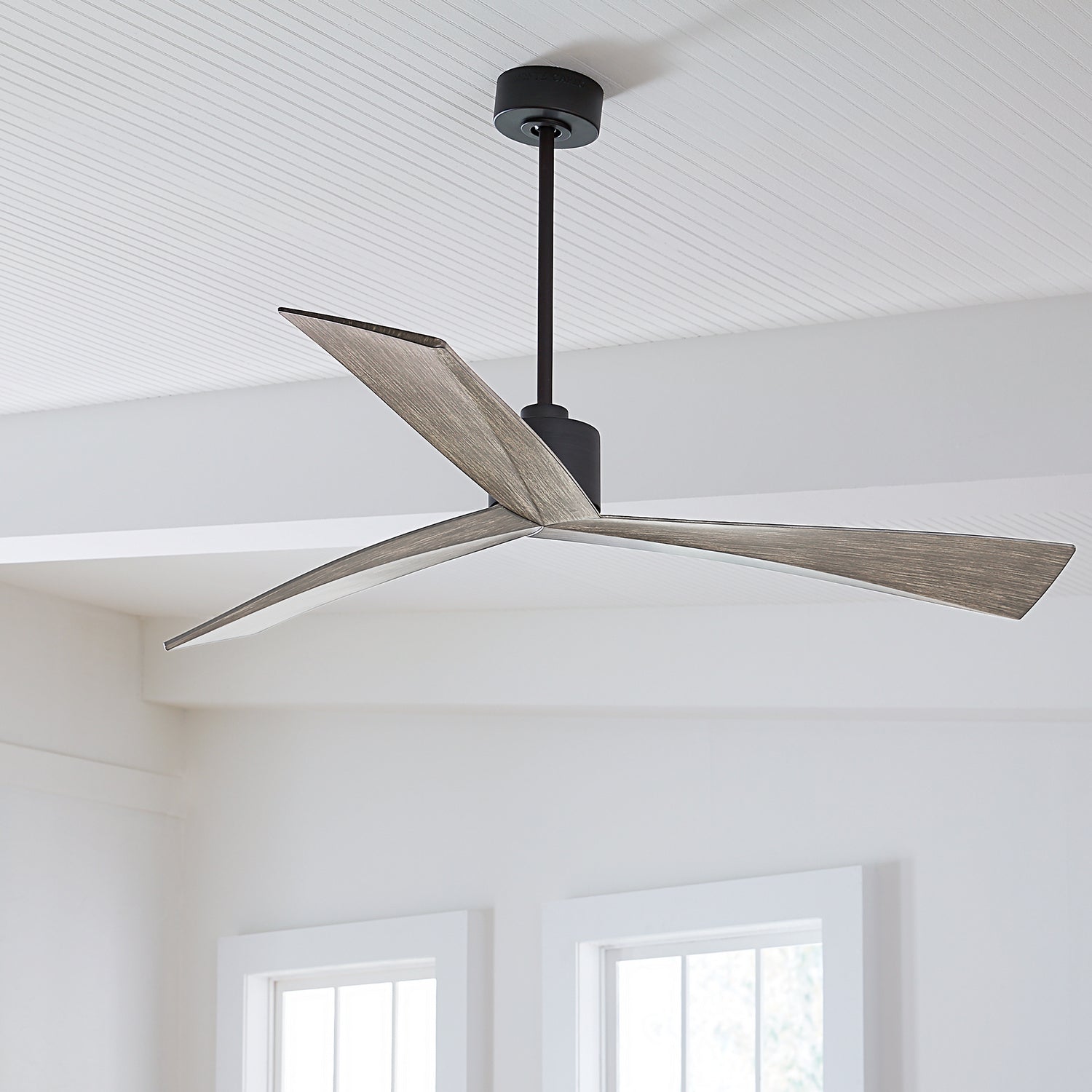 Making a bold statement with three uniquely carved, sloped blades, the Adler 60 ceiling fan has an ultra-modern aesthetic. Available in five finishes. The DC motor provides powerful airflow and outstanding energy efficiency. Adler 60 comes with a hand-held remote with six speeds. The Sean Lavin Adler 60 in Burnished Brass features a 85.0 X 28.0 6 speed motor with a Ten degree blade pitch.