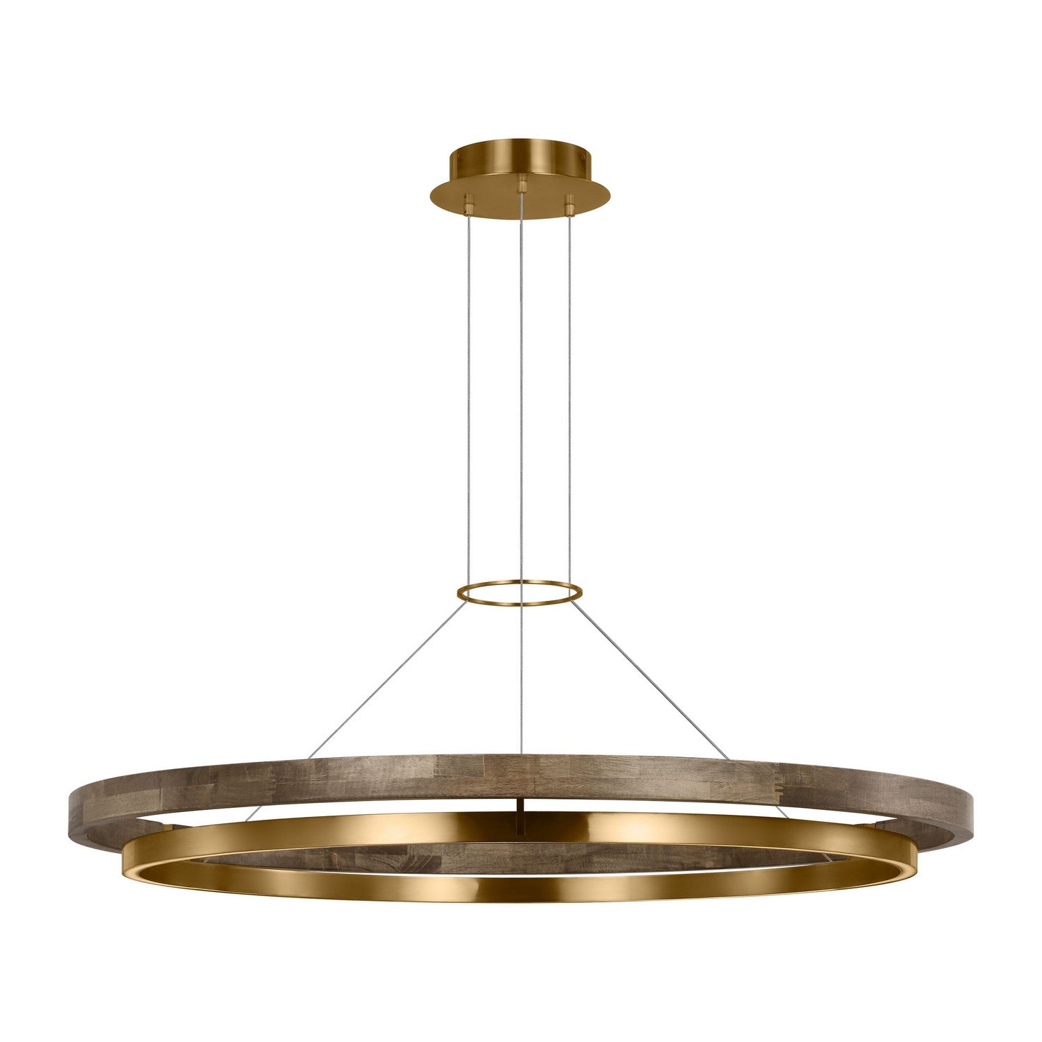 Grace 48 Chandelier by Sean Lavin is designed with two rings that illuminate this contemporary chandelier. A large weathered oak outer ring has organic texture complemented by a decorative black inner ring housing gently diffused upward and downward LEDs and can be accented with metal spacers for a touch of contrast. Featuring integrated LED technology on the inner ring, the Grace Chandelier provides a graceful halo of light. Lamping options are compatible with most dimmers. Refer to the Dimming Chart for more information