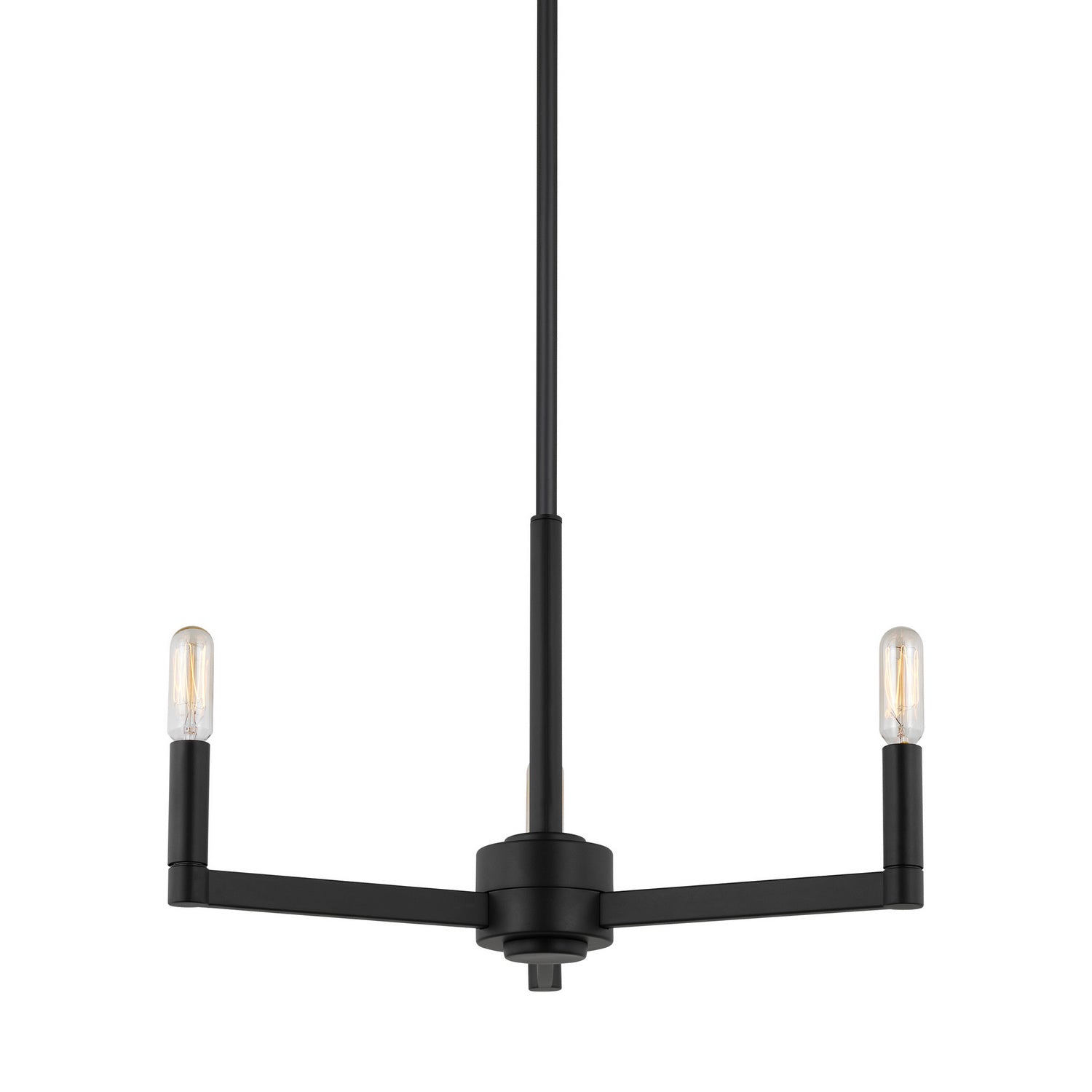 The Fullton three light single tier chandelier in Midnight Black is sleek, contemporary, and uber minimalistic. Visual interest is created using a mix of rectangular and round frames, a subtle design detail. Although this collection is contemporary, it can be mixed in with variety of collections with ease.