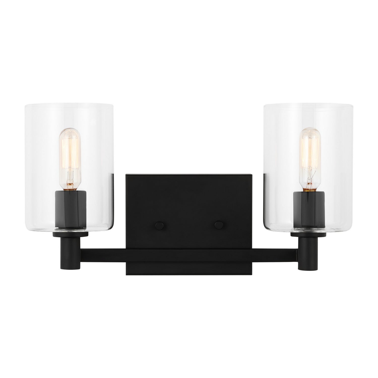 The Fullton two light vanity fixture in Midnight Black is sleek, contemporary, and uber minimalistic. Visual interest is created using a mix of rectangular and round frames, a subtle design detail. Although this collection is contemporary, it can be mixed in with variety of collections with ease.