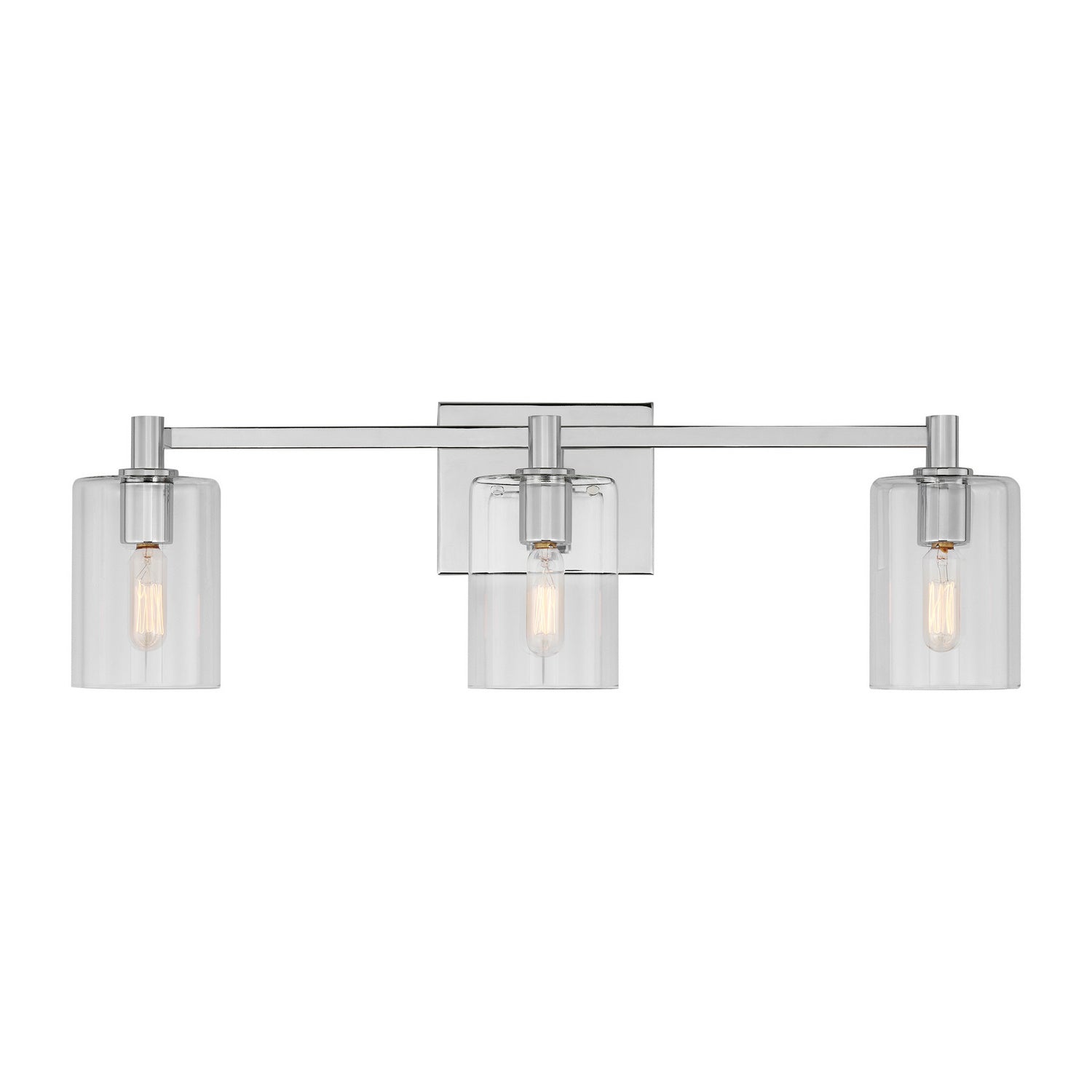 The Fullton three light vanity fixture in Chrome is sleek, contemporary, and uber minimalistic. Visual interest is created using a mix of rectangular and round frames, a subtle design detail. Although this collection is contemporary, it can be mixed in with variety of collections with ease.
