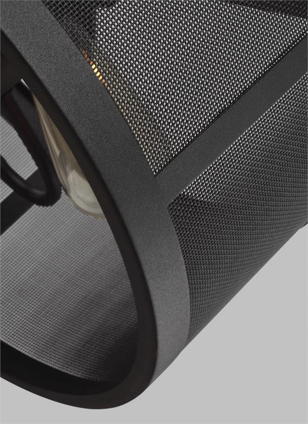 The Gereon two light semi flush fixture in black is an ENERGY STAR qualified lighting fixture that uses LED bulbs to save you both time and money. A distinctive mesh lampshade in the Gereon Collection harkens back to the industrial days of machine innovation, adding a rugged look of workmanship that transforms an interior's identity. At once stylistic and utilitarian, Gereon is available in a finely textured Black finish with medium base sockets. The muted glow of the bulbs beneath the mesh framing adds a rugged personality. The versatile Gereon fixtures are damp rated for covered outdoor installations as well. Available as a 1-light mini-pendant, 3-light and 4-light pendants, 2-light semi-flush ceiling mount, and 1-light wall sconce to adapt interior settings in a variety of ways.