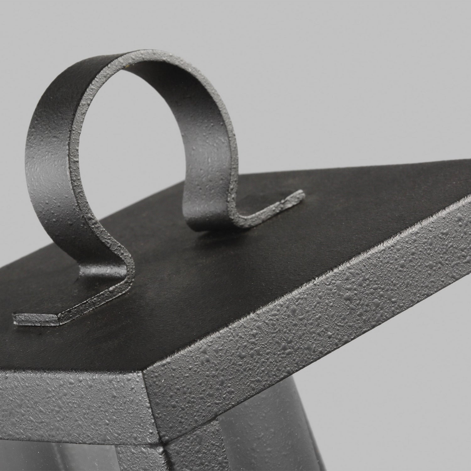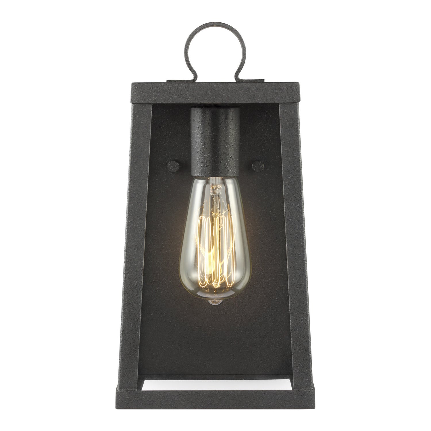 The Marinus one light outdoor wall fixture in black creates a warm and inviting welcome presentation for your home's exterior. Showcase a classic look with rugged flair in the Marinus Collection. Utilizing a modern and sharply squared off lantern shape to frame a single bulb, these fixtures give a new look to a familiar shape. Through the clear glass exterior, light shines with brightness and longevity. With a vintage-style bulb inside of a clear glass, it's sure to enhance the nostalgic touch you're looking for. The simple textured Blacksmith finish of the Marinus is designed to enhance you home's curb-appeal. Available in a variety of sizes for flexible options to match and complement a wide variety of exterior settings.