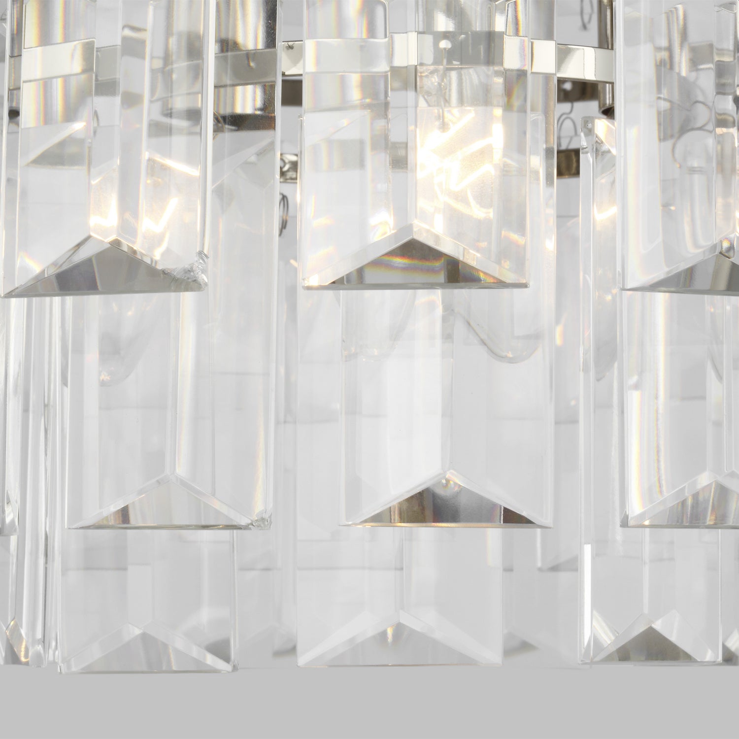 Inspired by the Art Deco style of 1920s Paris, the Arden series from C&M by Chapman and Myers captures the period's fascination with geometric forms. A stunning addition to an entryway, great room, or above a large dining table, the Arden tiered chandelier features panels of textured glass that hang in linear architectural tiers from a solid metal frame.