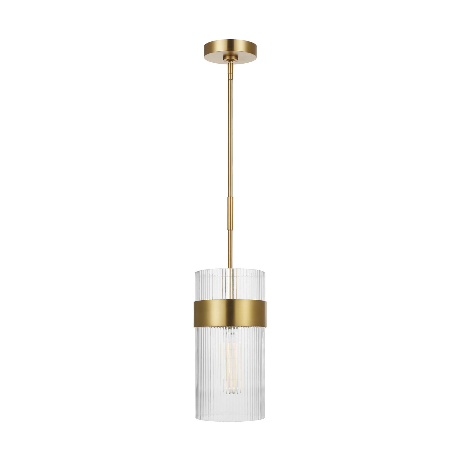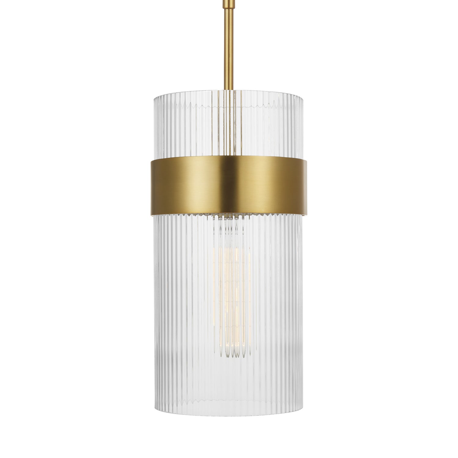 In the Geneva one light indoor pendant, a fluted shade forms an elegant, dynamic silhouette that's balanced by a strong frame of Burnished Brass or Polished Nickel.