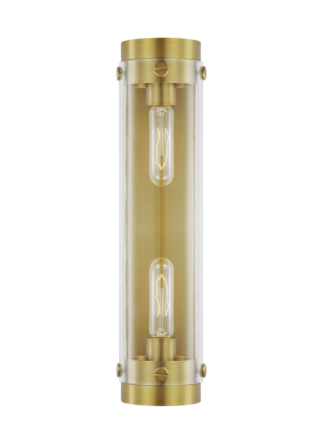 Garrett from Chapman & Myers for Visual Comfort Studio features cylindrical Clear Extruded Glass shades paired with industrial hardware. The two light flush mount fixture in burnished brass supplies ample lighting for your daily needs, while adding a layer of today's style to your home's décor. This striking blend of metal and glass, sophisticated in its simplicity, is both industrial and glamorous. It is sure to inspire a higher level of style wherever it is placed.