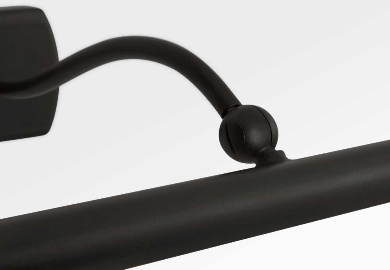 The Lamont 24" Picture Light by Chapman & Myers offers a balanced expression of the collection's sleek, architectural design. Its ultra-slim LED-lit shade delivers even illumination across medium-sized artwork or shelving, while the sculptural S-shaped arm and ball finial accents add a touch of elegance. Designed to highlight without distraction, the 24" fixture is ideal for living rooms, offices, or dining rooms—spaces where clarity, restraint, and refined detailing create a quietly elevated atmosphere. As part of the Lamont Collection, it exemplifies the harmony of minimal form and purposeful function.