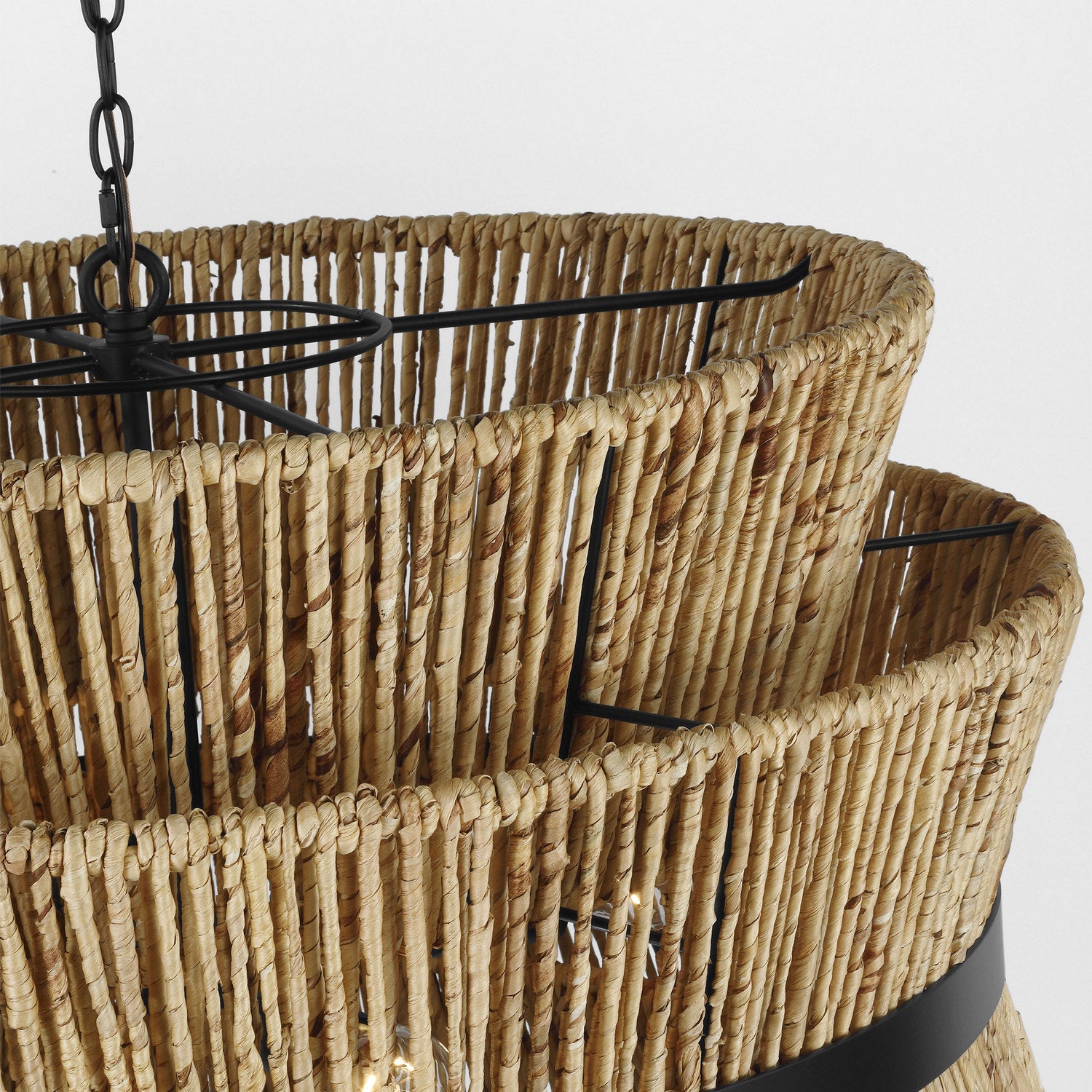 Make a bold style statement with the coastal-inspired organic Thurlo series by Drew & Jonathan Scott. Crafted of natural abaca rope, hand wrapped around the frame for a modern bohemian style and accented with a metal band for a tailored look. Filtering the light from within, each piece creates a play of light and shadow in a room, adding an inviting ambiance.