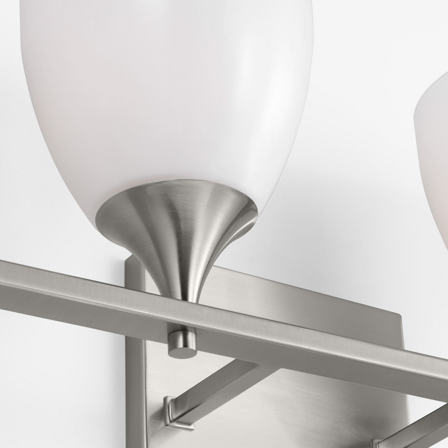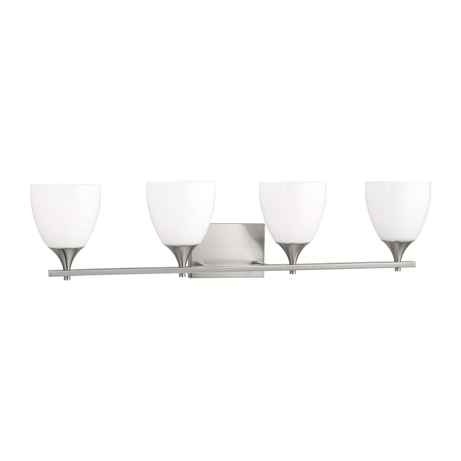 A modern take on a classic design, the Drew & Jonathan Toffino Four Light Wall / Bath Sconce breathes new life to its traditional shape with milk glass shades and striking, modern finishes. Made to coordinate across a broader range of bath hardware, the Toffino is available in four popular finishes, Brushed Steel, Chrome, Midnight Black, and Satin Brass, and looks great on its own or installed above a bathroom vanity. This fixture may be mounted in the up or down position, and is cETL listed for damp locations, making it the perfect lighting solution for any space.