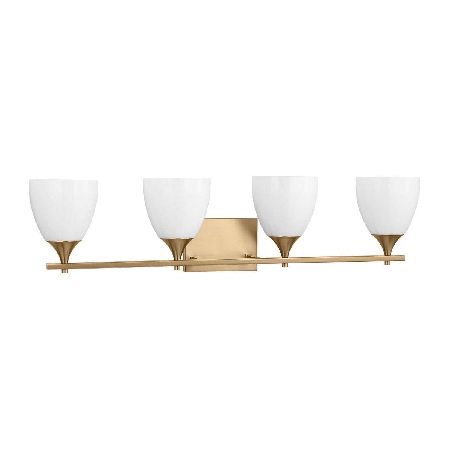 Toffino Four Light Bath in Satin Brass - available from The Lighting Shoppe, trusted by Canadian homeowners