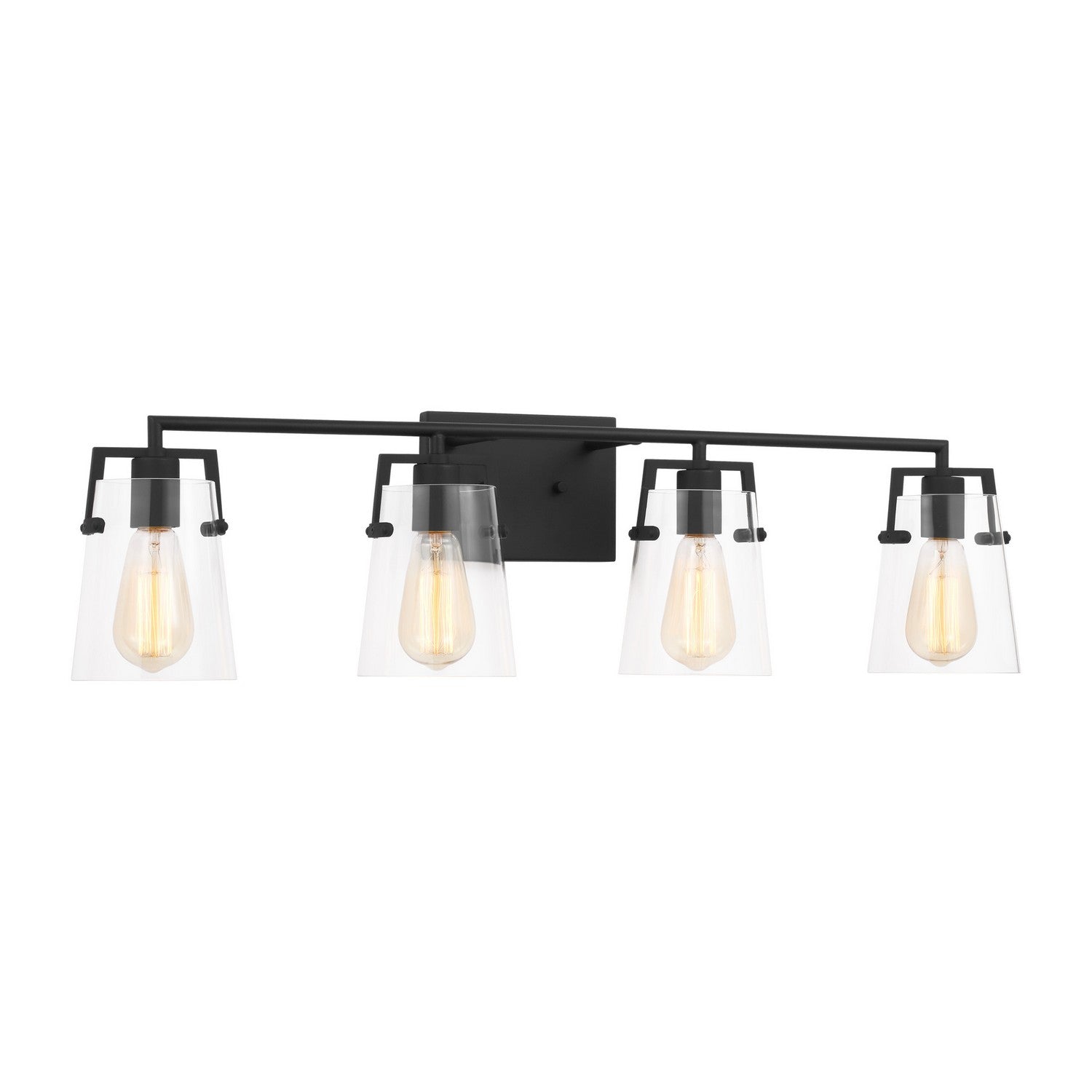 Add a bright burst of light where you need it most with the stylish Drew & Jonathan Crofton Four Light Wall / Bath Sconce, featuring a sleek rectangular metal backplate and clear glass shades. Made to coordinate across a broader range of bath hardware and design styles, the Crofton is available in four popular finishes, Brushed Steel, Chrome, Midnight Black, and Satin Brass. This light looks great on its own or installed above a bathroom vanity, and the glass shades make it ideal for filament bulbs. This fixture may be mounted in the up or down position, and is cETL listed for damp locations, making it the perfect lighting solution for any space.