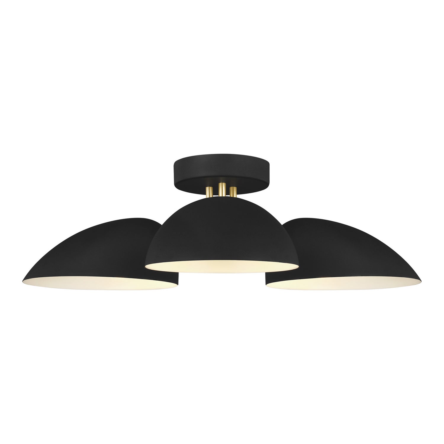 The Jane three light flush mount fixture in midnight black enhances the beauty of your home with ample light and style to match today's trends. The retro-inspired Jane collection features a luxe two-tone finish of Burnished Brass with Midnight Black or Matte White accents. Adjustable shades on Jane chandeliers enable illumination that perfectly suits your space. Elongated arms and soft curves add dimension and drama to each fixture.