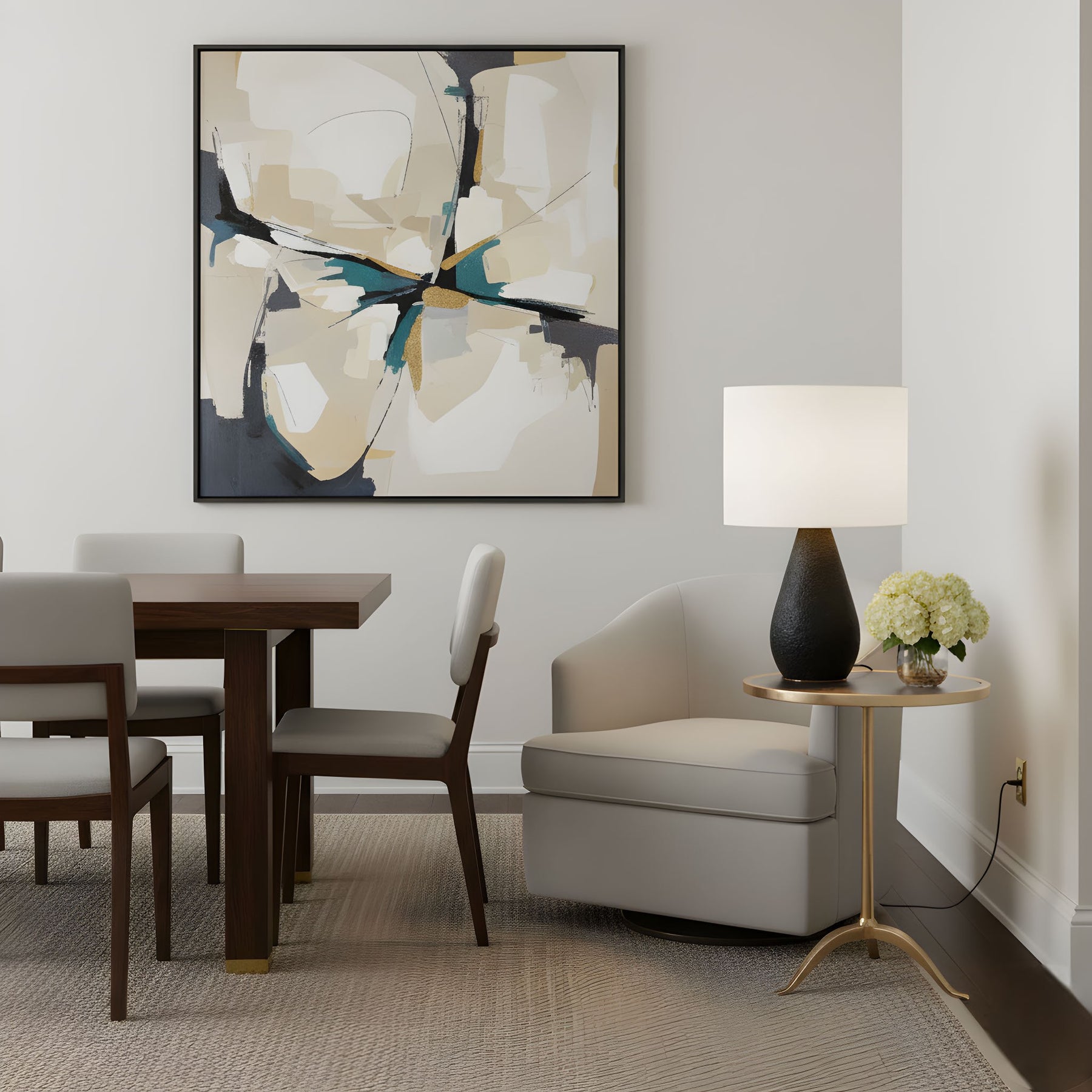 Inspired by African artisanal pottery, Breccia table lamp by Ellen DeGeneres is a tribute to handmade crafts. Washed cement and white linen complement each other to create an effortlessly balanced aesthetic. The table lamp can be used alone or in pairs in an office, living room or bedroom.
