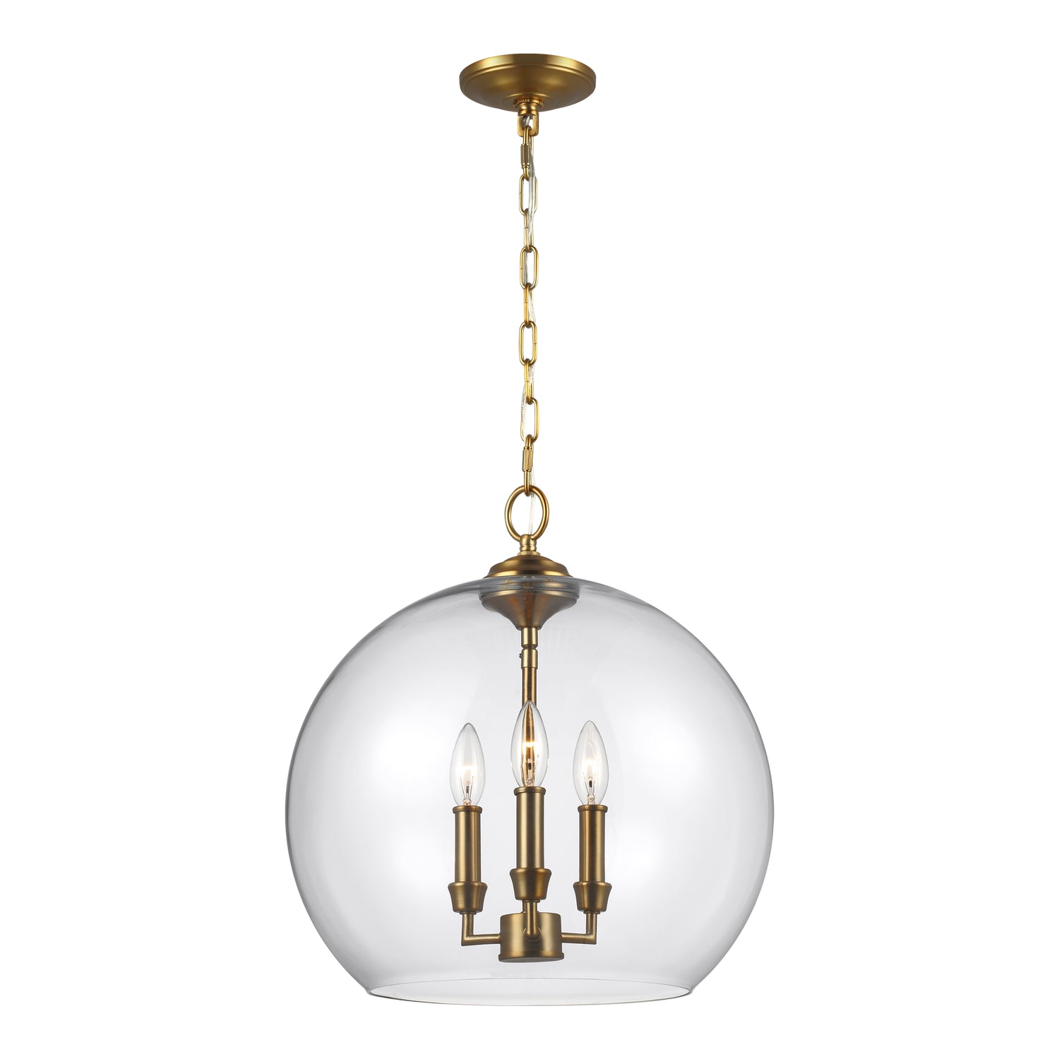 The Lawler pendant collection by captures the cozy charm of the classic bell and orb pendant silhouettes seen throughout history and versatile enough to complement a foyer, living room, dining room, bedroom, or kitchen. The candelabra lamping suspends from the center, and appears floating within the Clear glass shade. The grand scale has Chrome hardware and a delicate ring embellishment all serve to update the designs making them modern classics. Installed individually, in pairs or in clusters, the Lawler pendants add warmth and charm to any traditional setting.