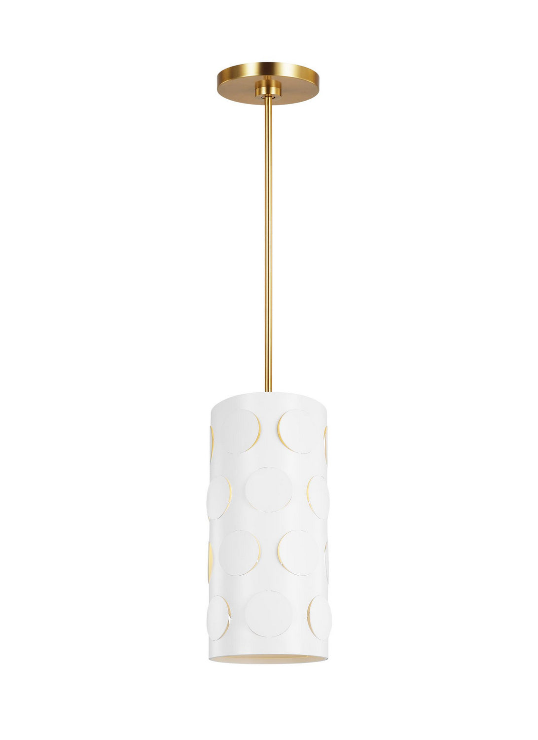 Dots are iconic to the kate spade brand—a simple and playful graphic motif. Dottie takes an iconic kate spade dot motif and cuts it into metal—creating a playful ambient light effect. A classic metal drum shade with an extra twist of perforated pattern. Use this fixture in place of any classic drum shade application, above a dining table, in a nook, or above an island.