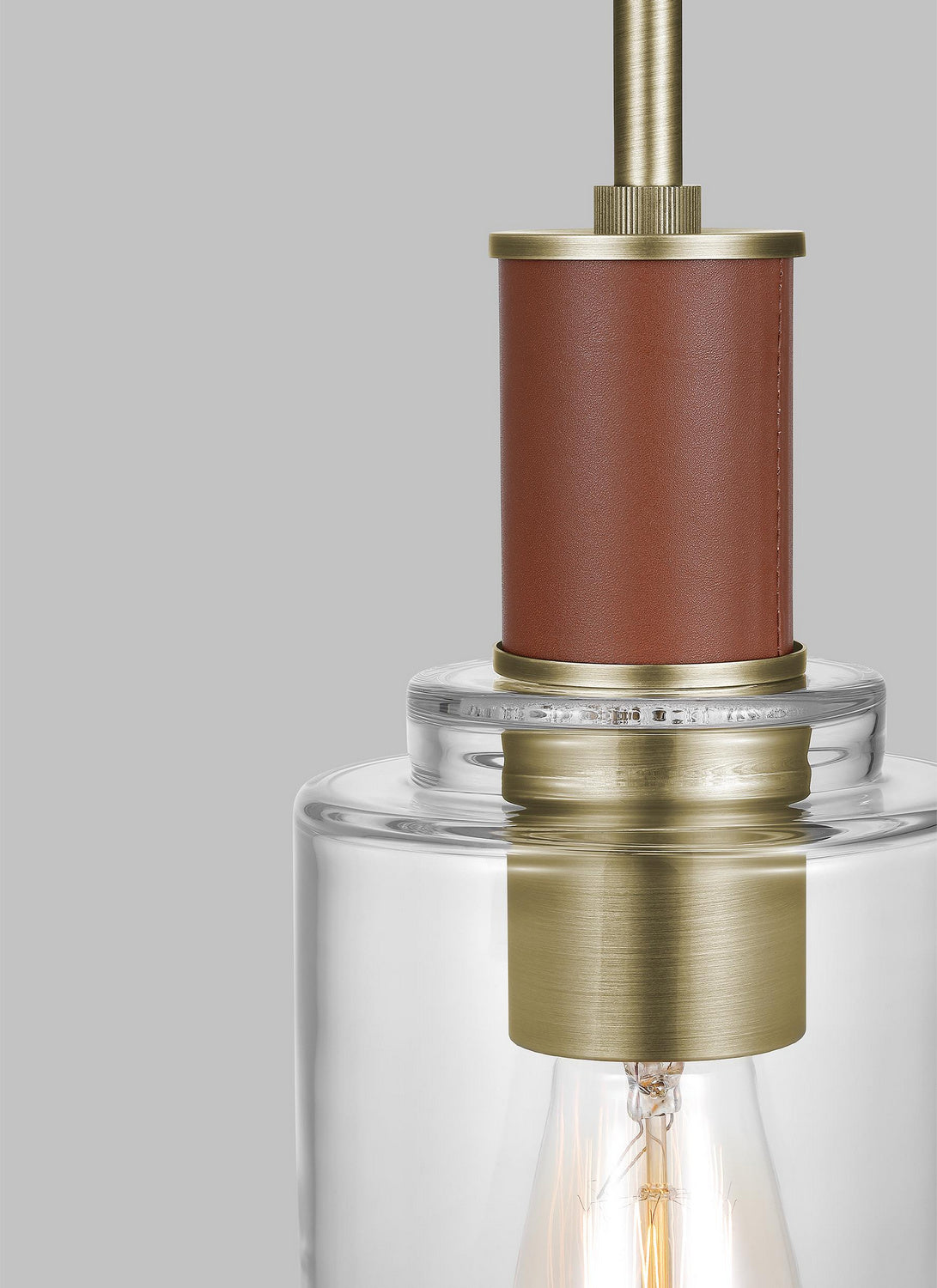 Classic lantern and pendant series with leather details. The combination of leather and steel gives this series equestrian flair. At home in a variety of decors, this tall pendant from Lauren Ralph Lauren is simple yet impactful with its leather elements in a Time Worn Brass finish with clear glass shade. With its compact size, we especially love this paired in multiples above a dining room table or kitchen island. A truly transitional series that can be at home in any décor.
