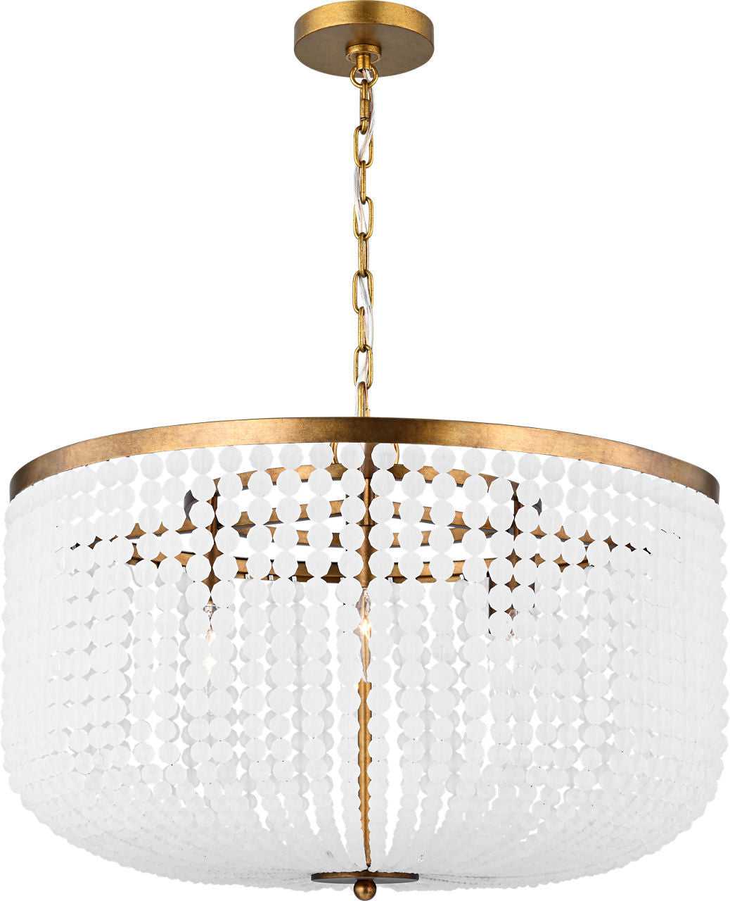 The Bellecour 24" Chandelier by Christiane Lemieux draws inspiration from the salons of Lyon and Paris during the late Art Deco era—when light was treated as both sculpture and seduction. Its frame, finished in vintage gild, echoes the warmth of French bronze patinas, while hand-strung honed crystal beads diffuse light with a quiet, waxen translucence reminiscent of carved alabaster. At 24 inches, this chandelier is ideal for dining rooms or living spaces where atmosphere matters—glamorous enough for evening, serene enough for day. Bellecour offers a contemporary interpretation of classic crystal lighting: less sparkle, more sculptural glow. Designed to complement plaster, limestone, and natural woods, it transforms light into an element of architecture and intimacy.