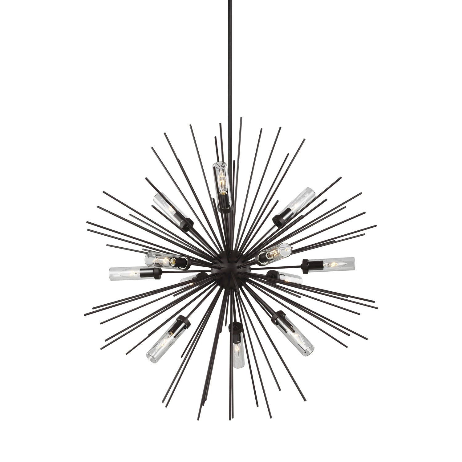 The Hilo, twelve outdoor light chandeliers in oil-rubbed bronze, enhances the beauty of your property, makes your home safer and more secure, and increases the number of pleasurable hours you spend outdoors. Hilo features slim metal arms extending from a center hub to create an organic globe silhouette. This damp-rated fixture is perfect for modernizing both indoor and covered outdoor spaces. Hilo uses candelabra bulbs covered in clear glass to protect from moisture.