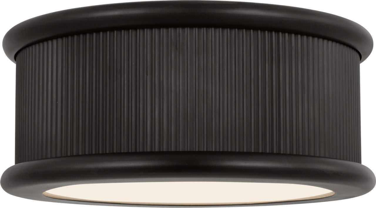 The Ritz 14" Flush Mount by Paloma Contreras offers a graceful expression of architectural elegance. A reeded band encircles the form, inspired by classic millwork, while a frosted silk screen glass diffuser softens the light with warmth and clarity. Reflecting Contreras' signature style, this fixture brings quiet sophistication to hallways, bathrooms, or walk-in closets.