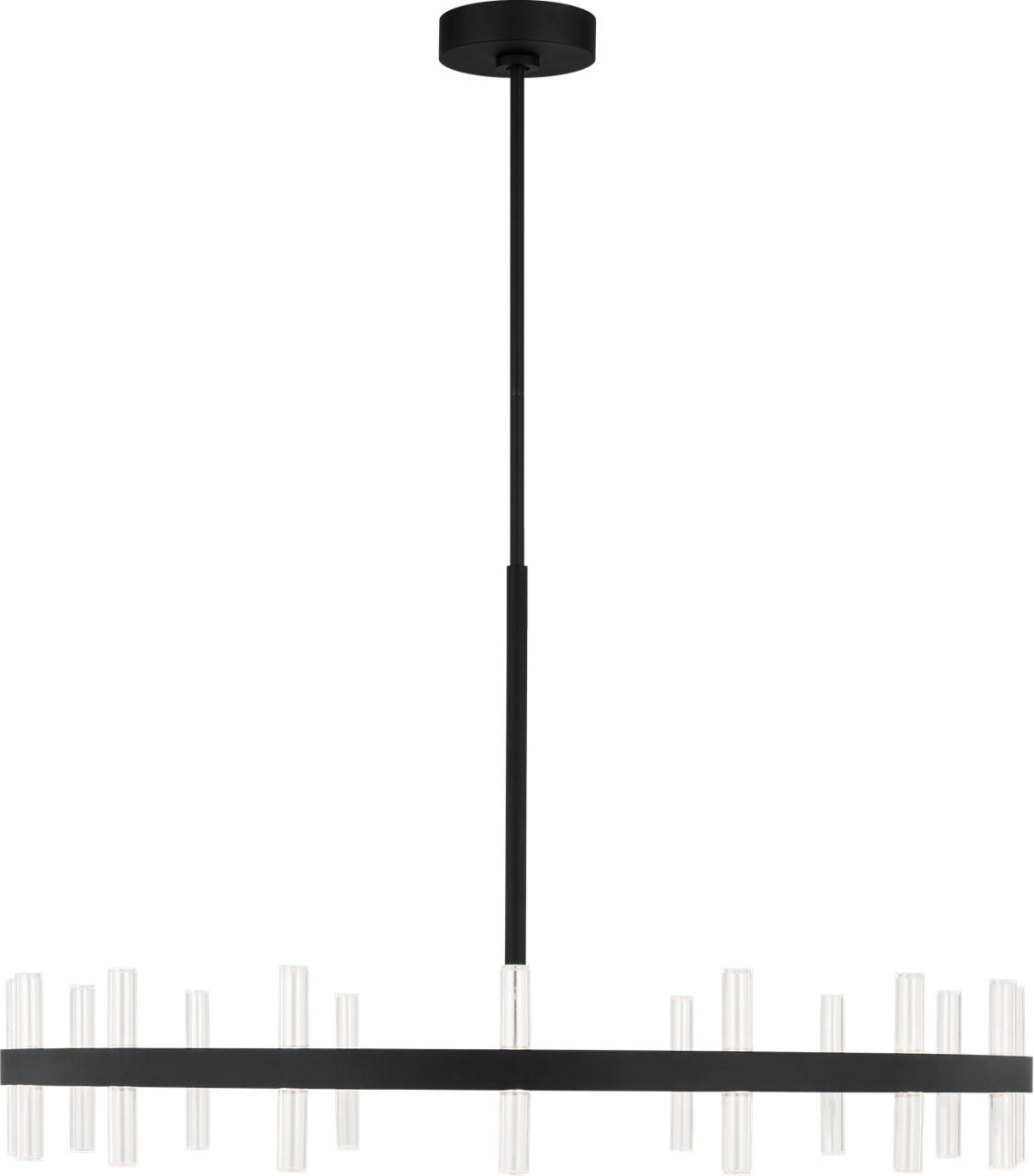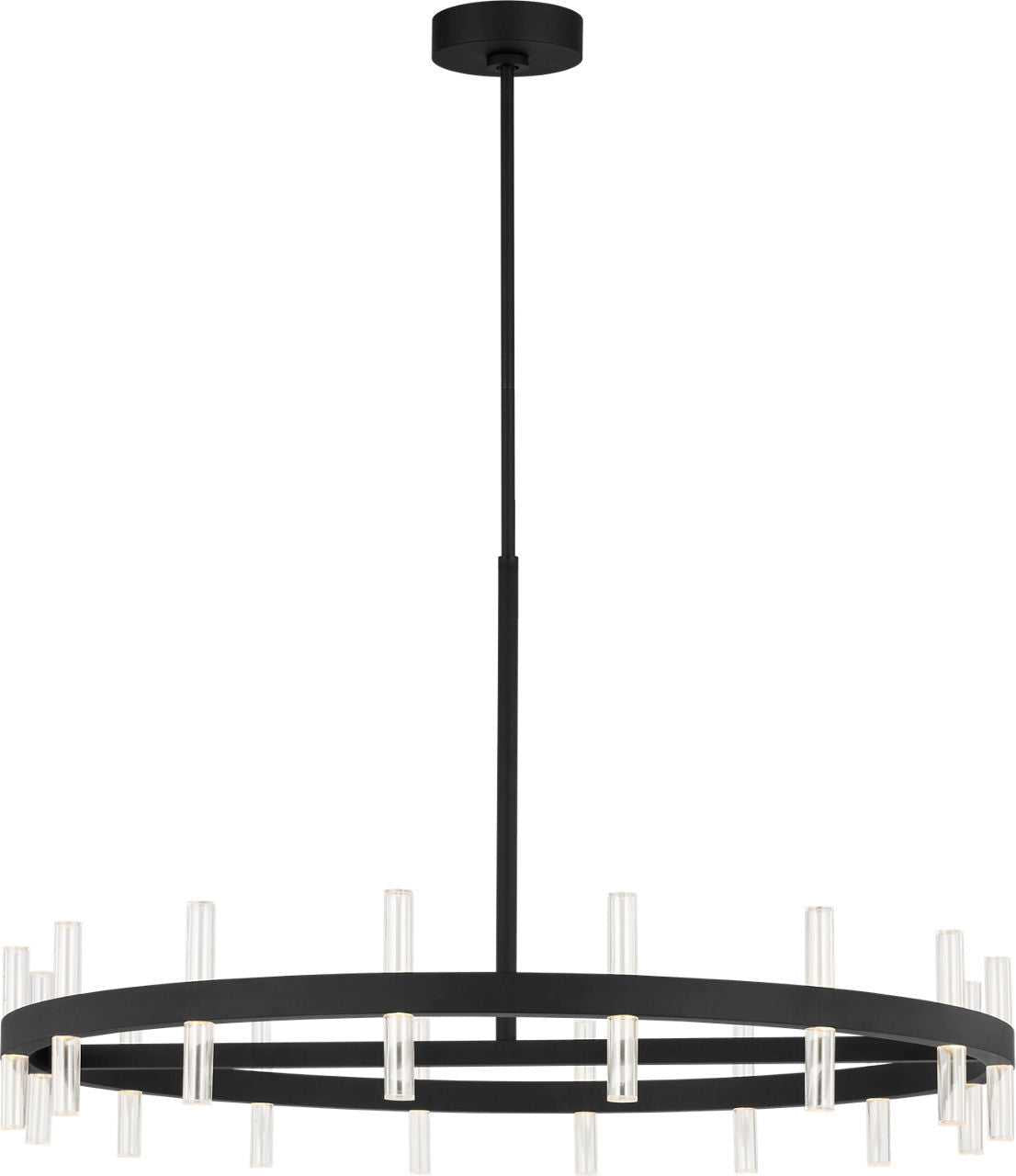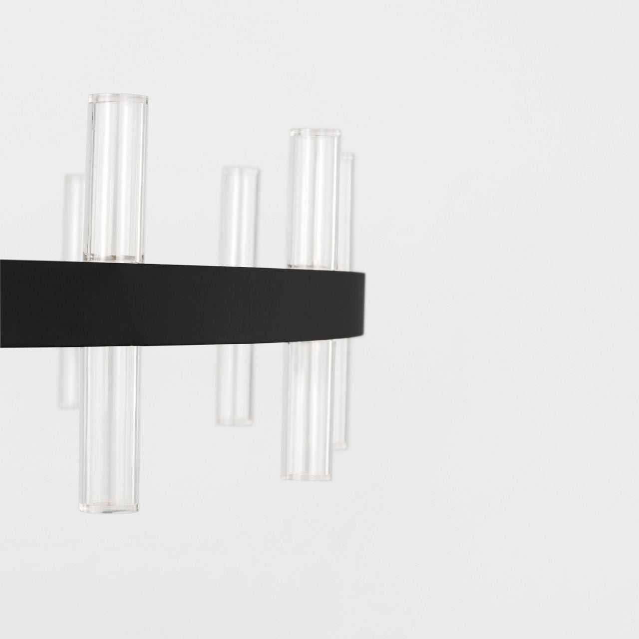 Silas 36" Chandelier by Sean Lavin features clean lines and precise detailing that define its minimalist character. Clear acrylic cylindrical diffusers pair with integrated LED light sources to create a crisp, modern effect. Each diffuser sits against a streamlined frame to emphasize balance and proportion without excess. With its mid-sized profile, the 36" chandelier is ideal for dining rooms, bedrooms, breakfast nooks, and entryways. The Silas Collection brings refinement to all contemporary interiors, offering lighting that is both sculptural and functional.