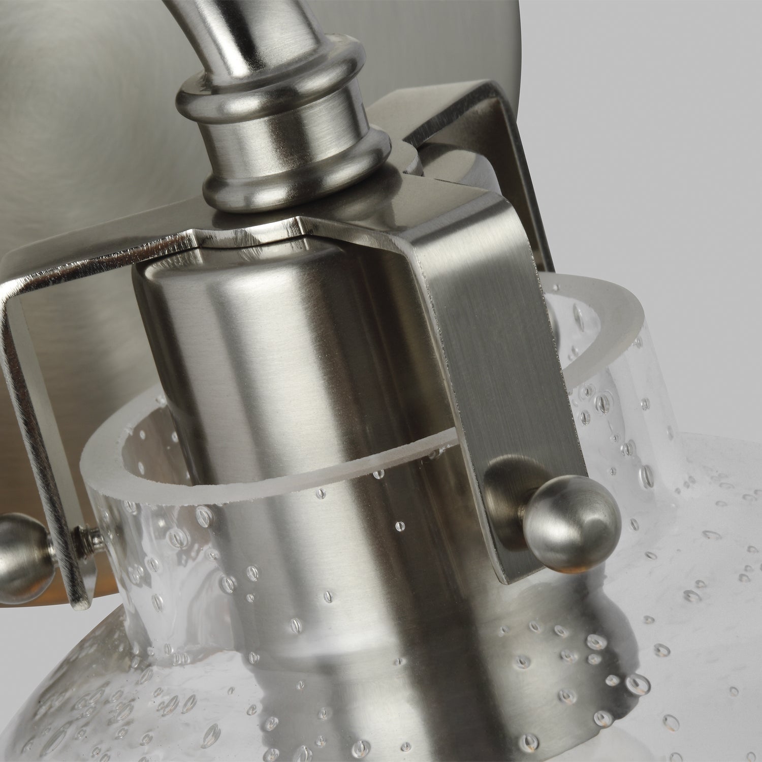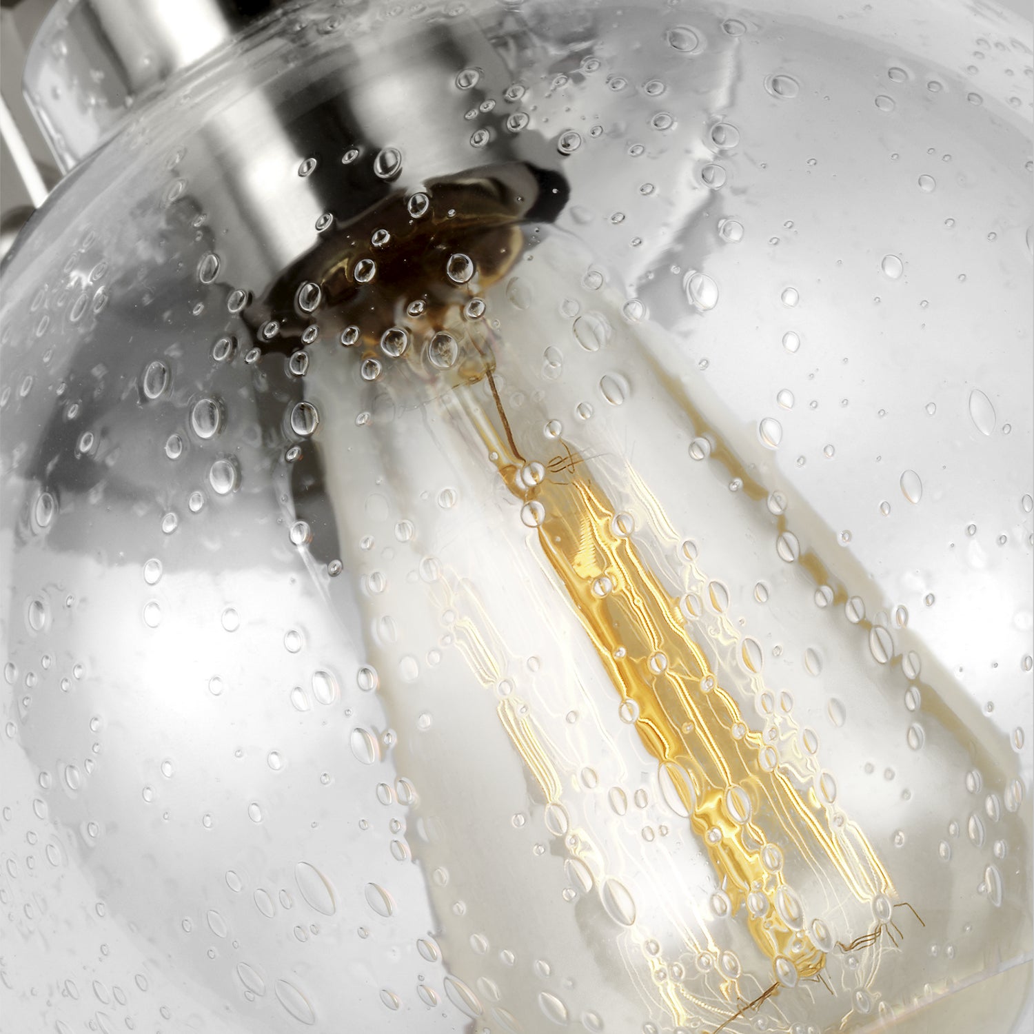 Clara features Clear Seeded glass shades that subtly diffuse the lamping while allowing the exposed bulb to be a central design element of the fixture. Choose the look that is right for your space with four finish options: Burnished Brass, Chrome, Satin Nickel, Oil Rubbed Bronze or a two-toned finish of Textured Black with Chrome.