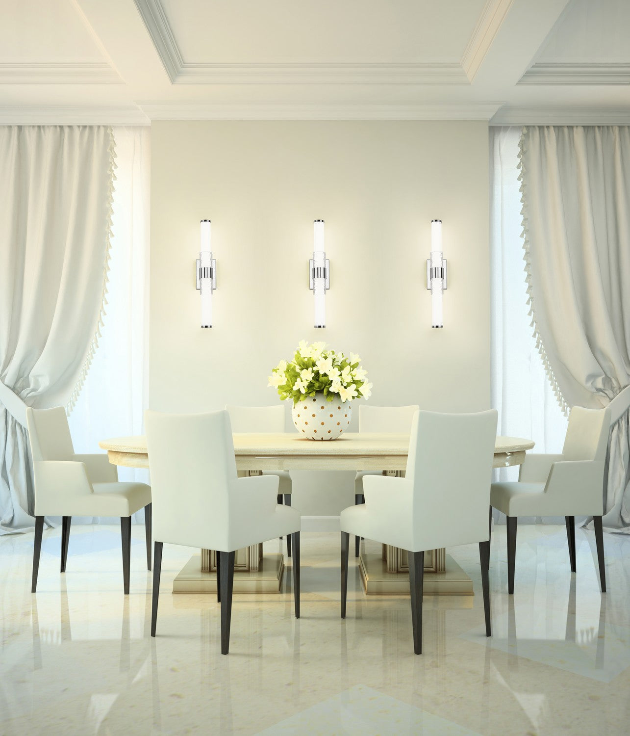 This chrome vanity light gleams with mirror-like brilliance, wrapping softly rippled glass in a high-shine finish that reflects every glimmer. It's sleek, sculptural, and made to brighten your space with elegance that lasts well beyond the first glance. This is a real standout piece that sparkles with style.