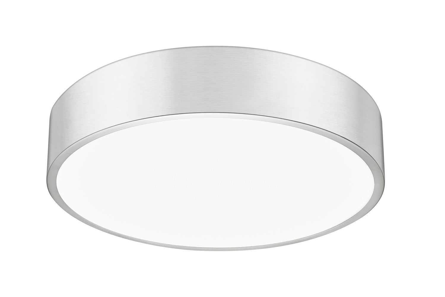 Add bright lighting and easy adjustability to your living area or bedroom with this modern flush mount LED ceiling light. Its round profile is enhanced with a bright brushed nickel finish that enhances its minimalist design to perfection. The dimmable, integrated LED light includes five light color settings, adding to your ability to create the perfect ambiance in any setting.