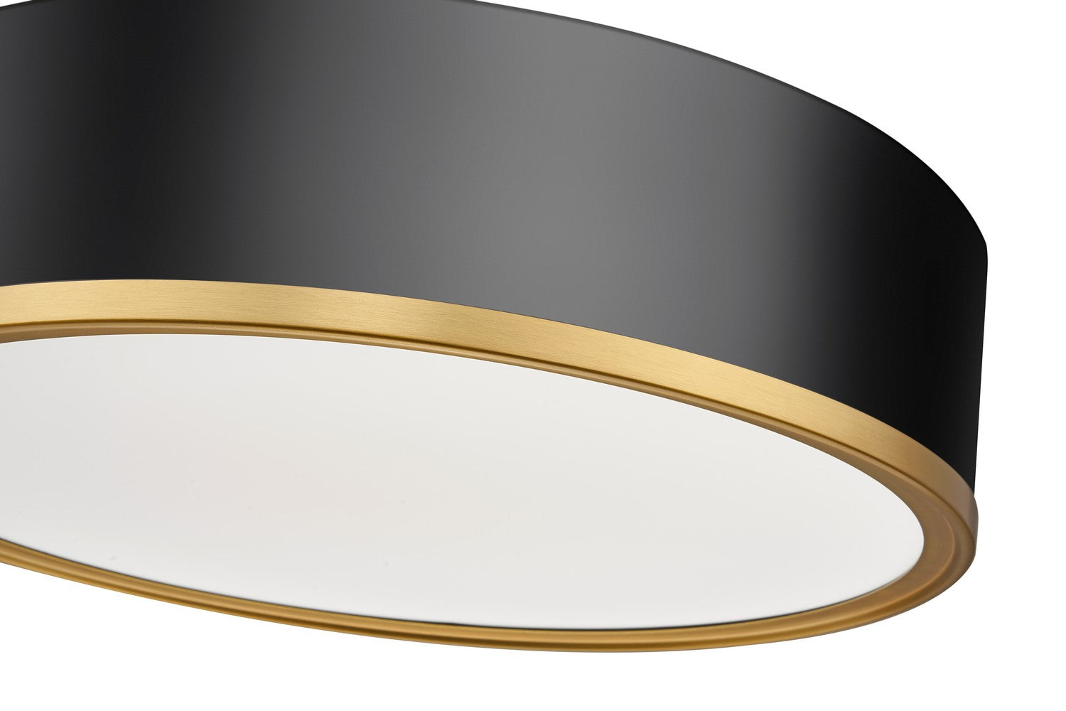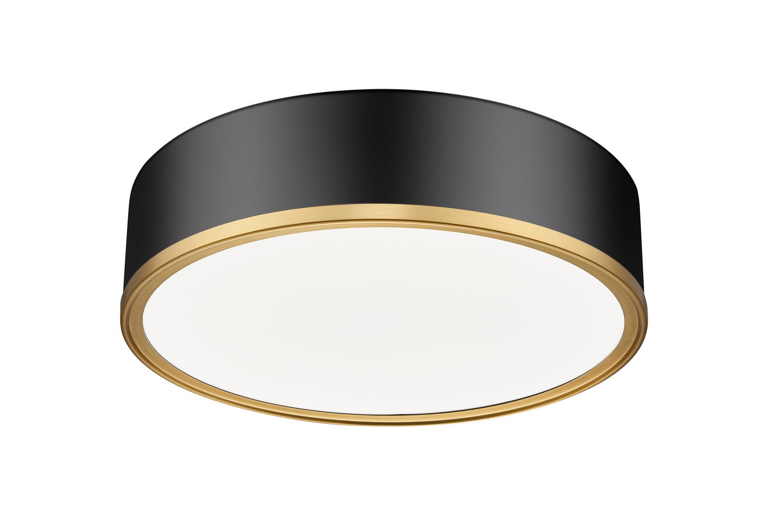 Bradley LED Flush Mount in Matte Black + Modern Gold - available from The Lighting Shoppe, trusted by Canadian homeowners