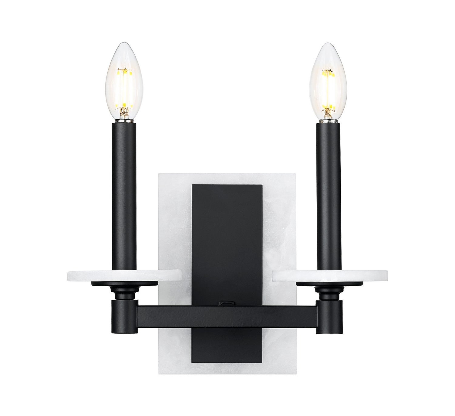 Where form meets contrast, beauty finds balance. This two-light sconce pairs the bold simplicity of matte black with the soft, organic glow of solid alabaster spheres. Its clean lines and sculptural backplate make a refined statement on any wall, offering ambient light with an edge of modern artistry.