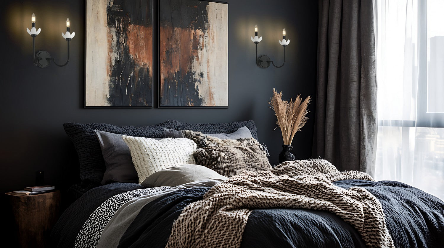 Cool matte black perfectly balances the elegant femininity of this transitional two-light wall sconce. Each light includes an interchangeable bobeche that refreshes the look with a choice of white metal or clear glass. Tall, J-shaped arms and a round wall plate complete the design, ensuring a bold silhouette in any setting.