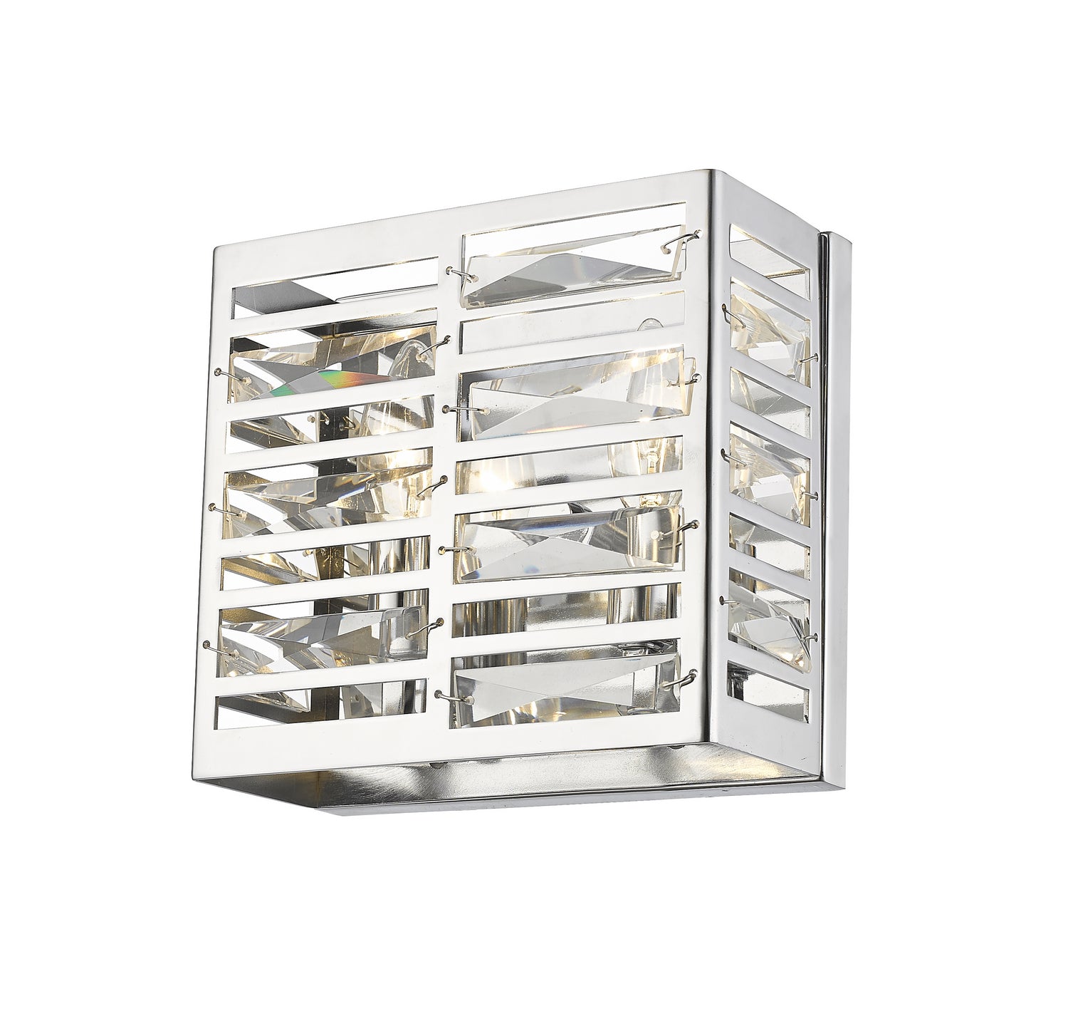 Clean lines from the square silhouette of this two-light wall sconce look stunning when paired with a modern motif. Geometric cut out shapes elevate the beaming chrome finish.