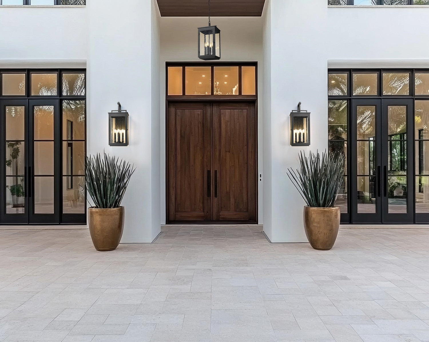 Wrapped in a sand black finish and topped with a stately handle, this outdoor light makes a dramatic statement from the very first glance. Clear seedy glass shimmers like storm-swept windows, casting a warm and welcoming glow. Inside, four candle-style lights bring classic charm to modern living. It feels both weathered and refined, like a story waiting to be told.
