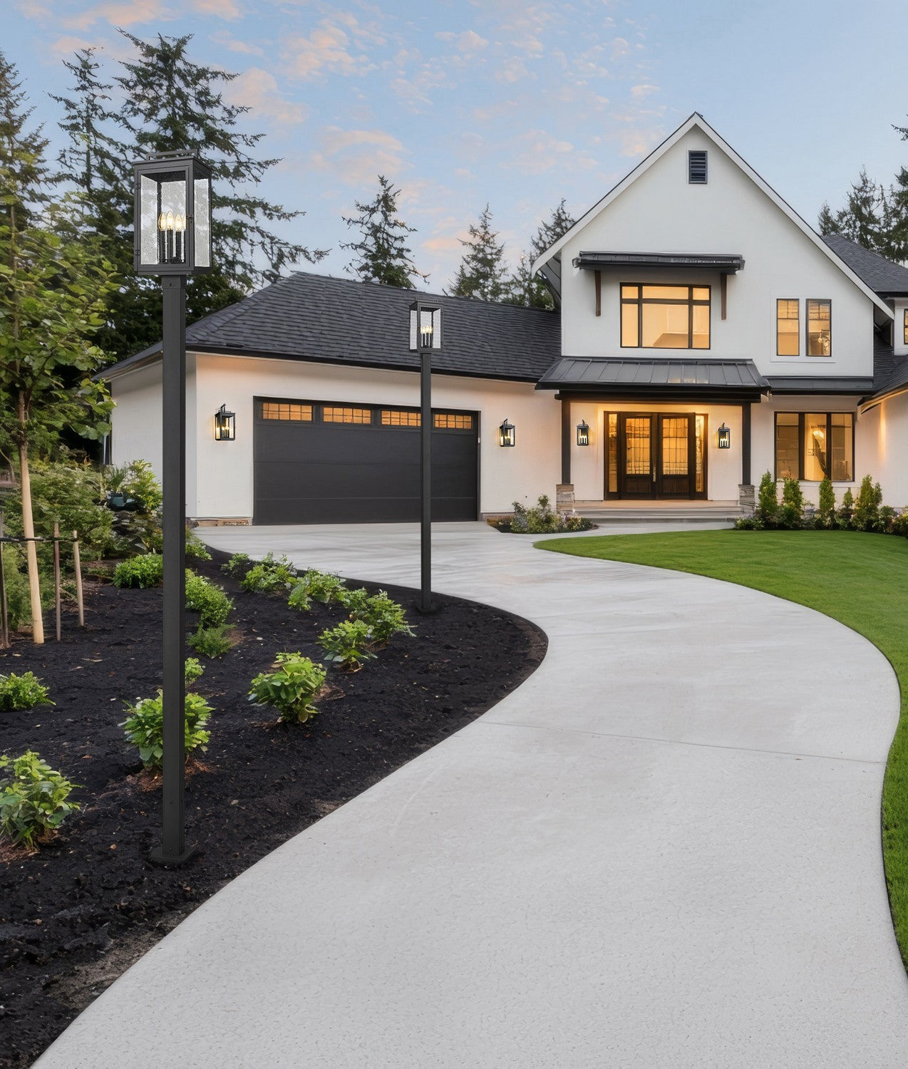 Hartwell Four Light Outdoor Post Mount in Sand Black - available from The Lighting Shoppe, trusted by Canadian homeowners