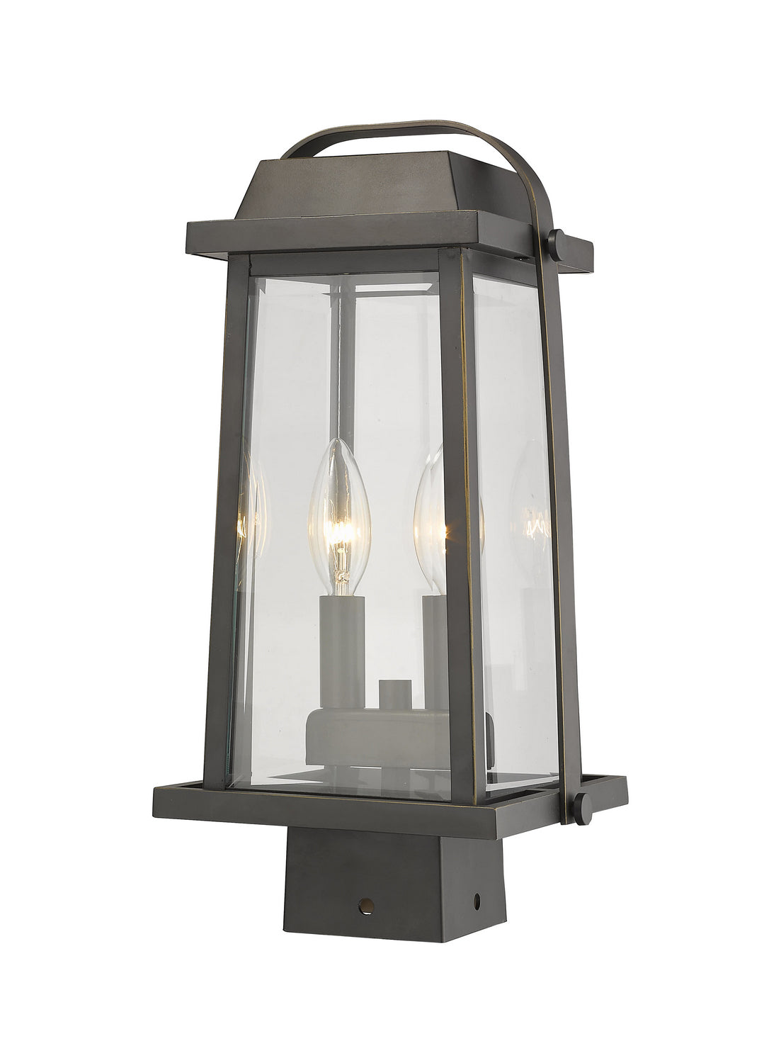 Designed to fit a square post, this outdoor post light lends a touch of classic character to a patio or walkway. An oil rubbed bronze finish complements a familiar lantern silhouette, while two lights behind clear beveled glass ensure exceptional illumination.