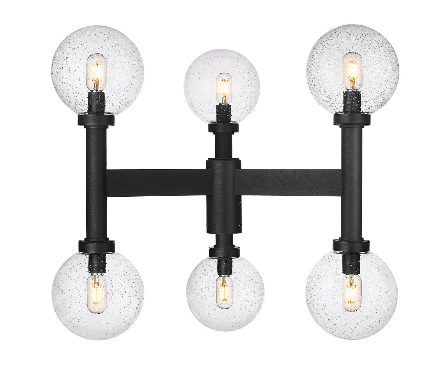 Glowing light sourced from a decadent fixture lifts the elegance in an exterior space when this six-light outdoor post mount fixture sits ready for placement. From the Laurent collection, it preserves a classic village aesthetic with a sophisticated, straightforward linear aesthetic. A black finish aluminum frame makes a stunning venue to host six delicate clear seedy glass globe shades, creating an impressive festive look.