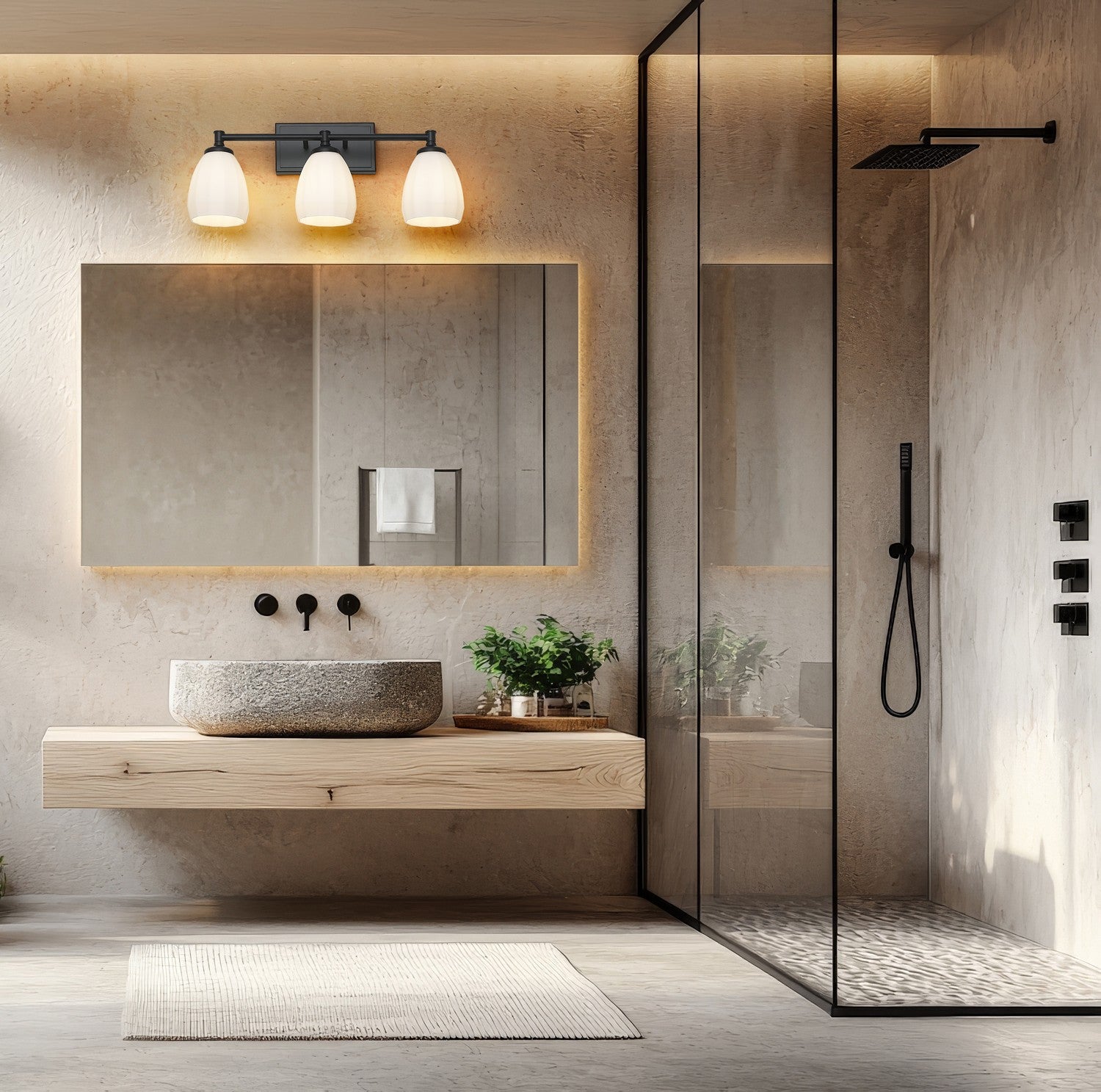Oren Three Light Vanity in Matte Black - available from The Lighting Shoppe, trusted by Canadian homeowners