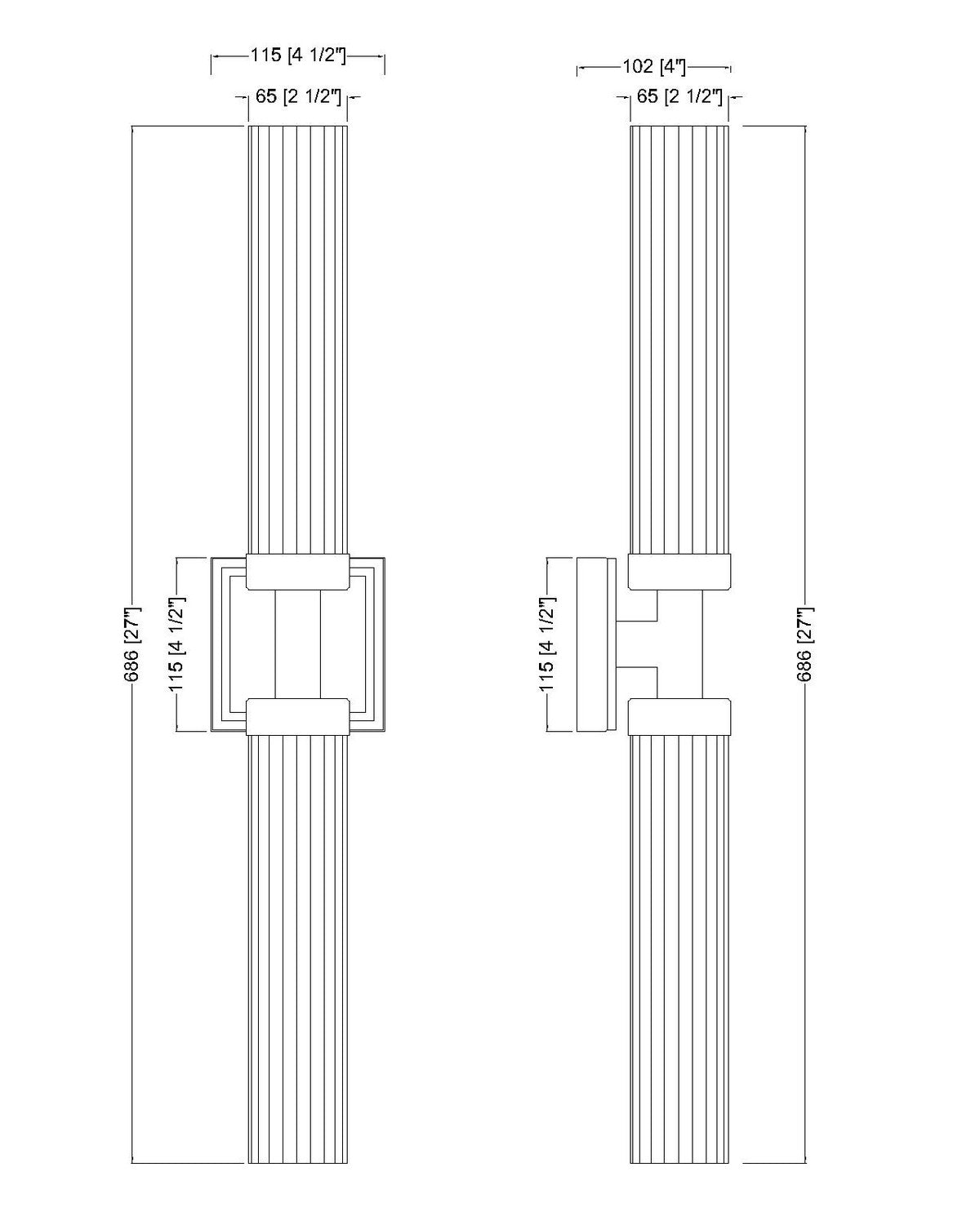 A double-ended design brings versatility and structure to this modern two-light wall sconce. Its linear design features a square wall plate and a cylindrical fixture at its center, finished in brushed nickel, creating a sense of precision and balance. Shades are slim cylinders of clear ribbed glass, adding the delicacy of fluting to a superb silhouette.