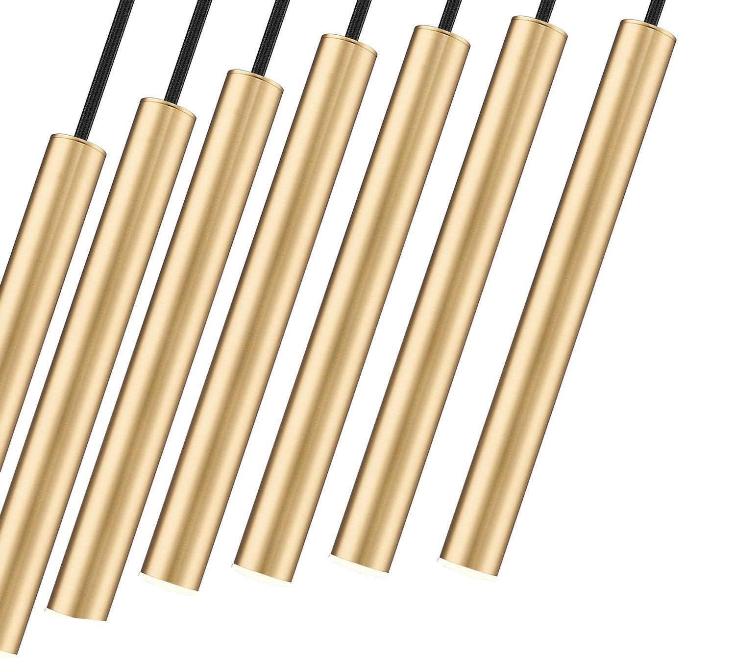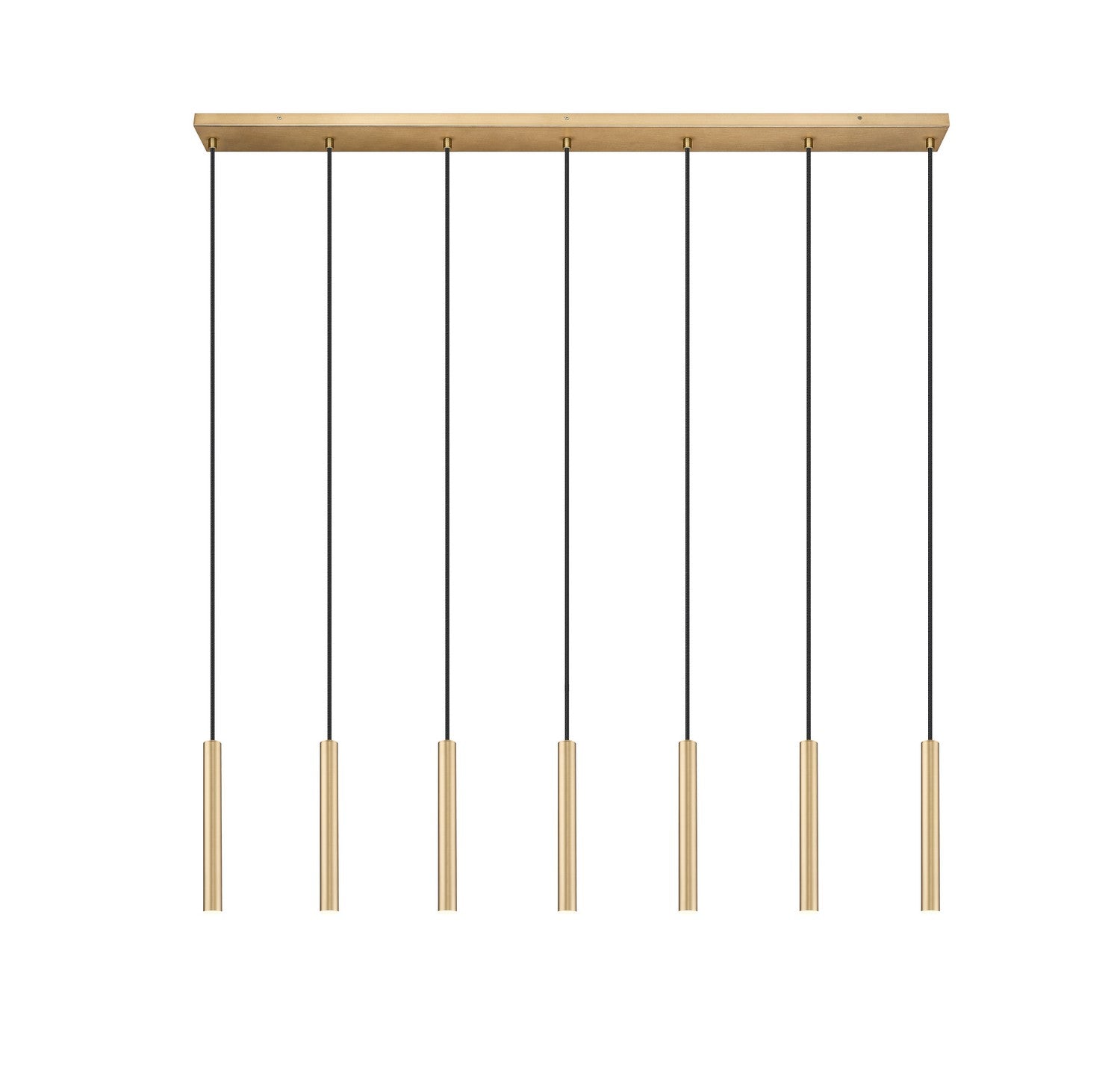 A modern gold finish sets a refined, inviting tone for this contemporary seven-light linear chandelier. Featuring energy efficient LED lights in slim housings, this minimalist design is ideal over a kitchen island or dining table, delivering both sophisticated style and dimmable illumination.