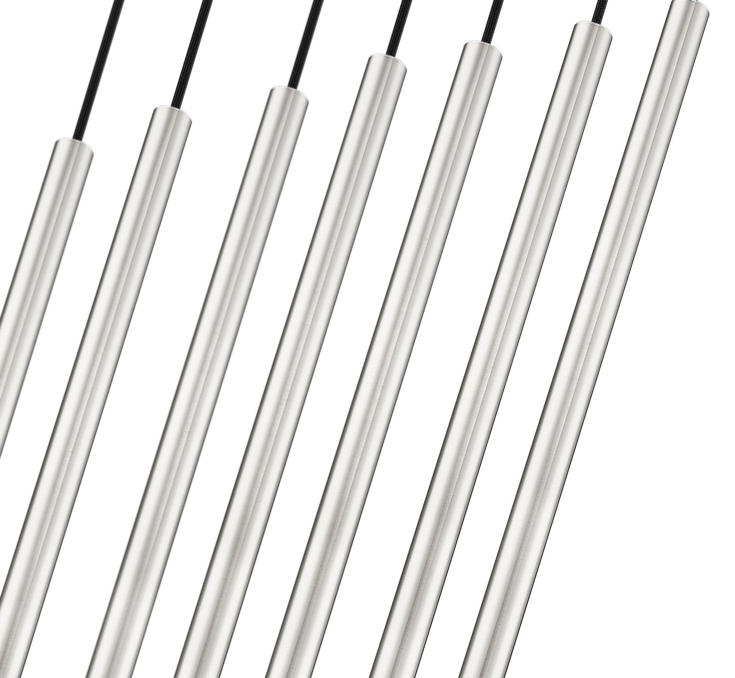 Reimagine a modern space with the sleek contemporary style of this seven-light linear chandelier. A striking choice over a kitchen island or dining table, it sets the tone with integrated LED lights that are both dimmable and energy efficient. A brushed nickel finish blends with any surrounding decor and emphasizes its streamlined aesthetics to perfection.